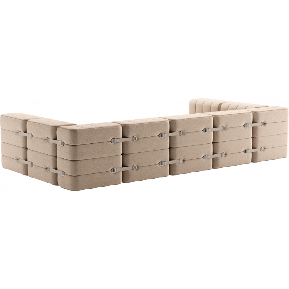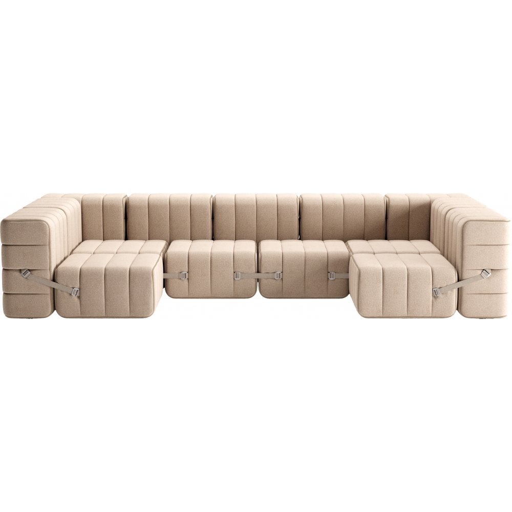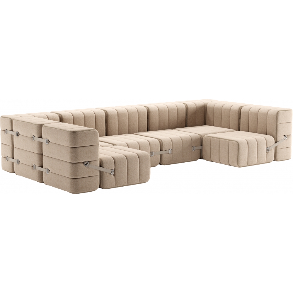 Sanfte Landschaften - wilde Konfigurationen. Spätestens mit 15 Curt Modulen geht der Landschaftsbau los. Die unendliche Weite an Konfigurationsmöglichkeiten diese Sets, ist zwar unerschöpflich, aber auch durchaus erschöpfend. Dafür hat man dann ja viel Platz um sich auszuruhen. Curt ist mehr als ein modulares Sofasystem, es ist ein modulares Sitz- und Liegelandschaft System.Im Inneren eines jeden Curt Moduls findet sich nicht nur ein stabiler mit Polstergurten bespannter Sperrholzrahmen, sondern auch eine aus drei unterschiedlichen Schichten bestehende Kaltschaumpolsterung. Contract: Alle Materialien können auf Wunsch für den Einsatz in Hotels oder öffentlichen Gebäuden ausgerüstet werden.