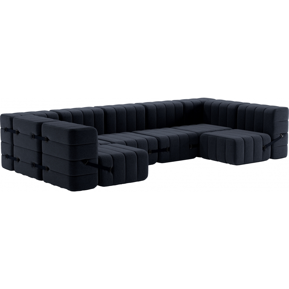 Sanfte Landschaften - wilde Konfigurationen. Spätestens mit 15 Curt Modulen geht der Landschaftsbau los. Die unendliche Weite an Konfigurationsmöglichkeiten diese Sets, ist zwar unerschöpflich, aber auch durchaus erschöpfend. Dafür hat man dann ja viel Platz um sich auszuruhen. Curt ist mehr als ein modulares Sofasystem, es ist ein modulares Sitz- und Liegelandschaft System.Im Inneren eines jeden Curt Moduls findet sich nicht nur ein stabiler mit Polstergurten bespannter Sperrholzrahmen, sondern auch eine aus drei unterschiedlichen Schichten bestehende Kaltschaumpolsterung. Contract: Alle Materialien können auf Wunsch für den Einsatz in Hotels oder öffentlichen Gebäuden ausgerüstet werden.