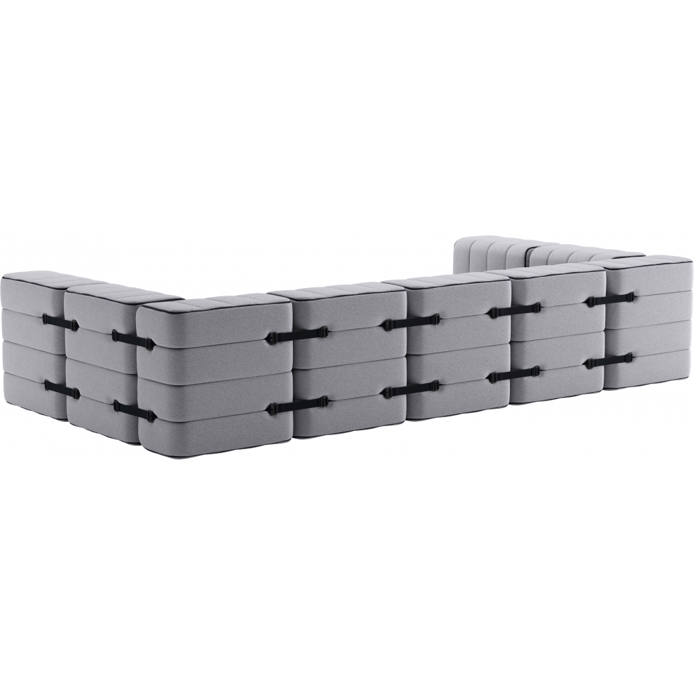 Sanfte Landschaften - wilde Konfigurationen. Spätestens mit 15 Curt Modulen geht der Landschaftsbau los. Die unendliche Weite an Konfigurationsmöglichkeiten diese Sets, ist zwar unerschöpflich, aber auch durchaus erschöpfend. Dafür hat man dann ja viel Platz um sich auszuruhen. Curt ist mehr als ein modulares Sofasystem, es ist ein modulares Sitz- und Liegelandschaft System.Im Inneren eines jeden Curt Moduls findet sich nicht nur ein stabiler mit Polstergurten bespannter Sperrholzrahmen, sondern auch eine aus drei unterschiedlichen Schichten bestehende Kaltschaumpolsterung. Contract: Alle Materialien können auf Wunsch für den Einsatz in Hotels oder öffentlichen Gebäuden ausgerüstet werden.