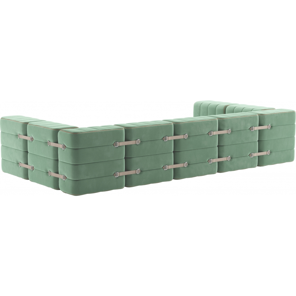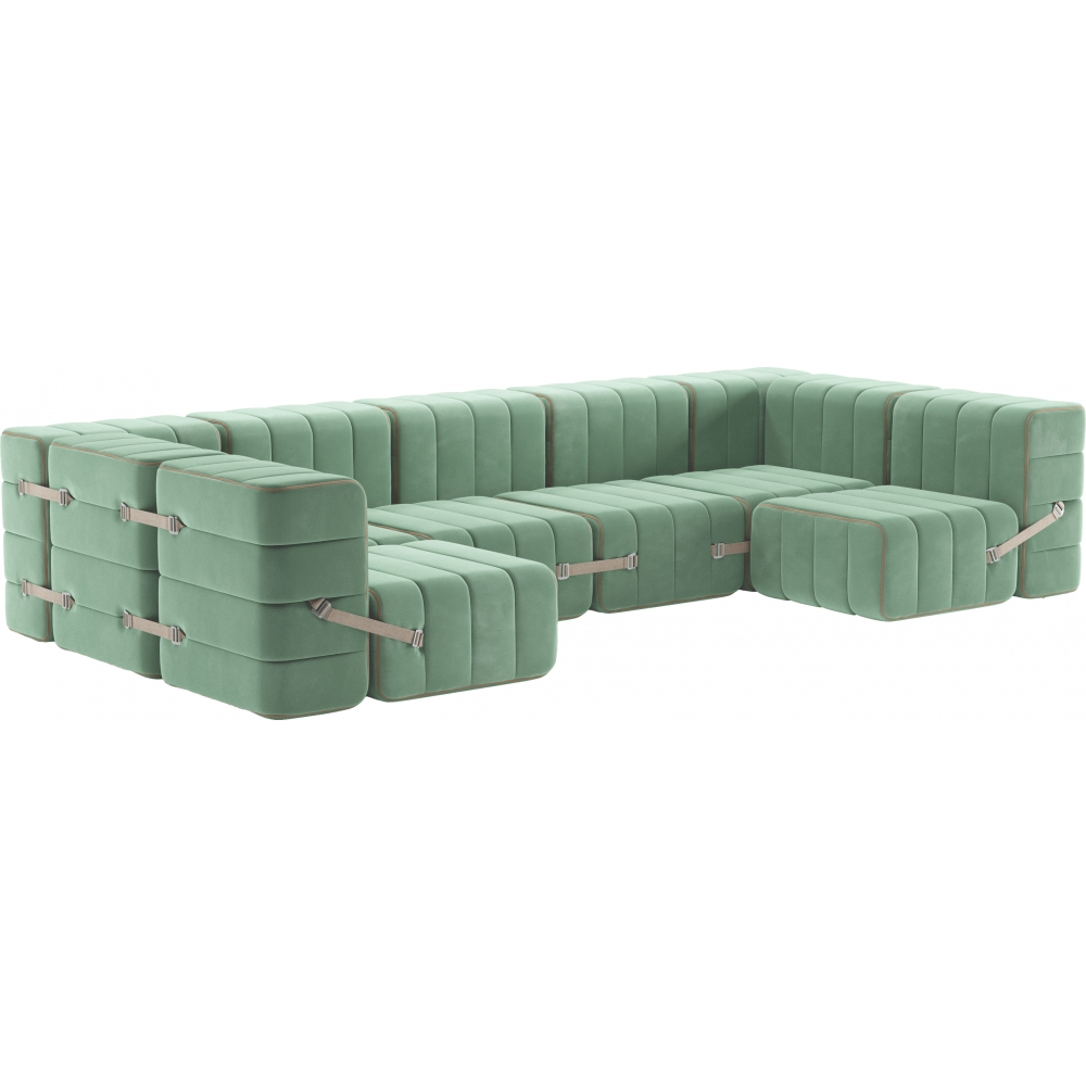 Sanfte Landschaften - wilde Konfigurationen. Spätestens mit 15 Curt Modulen geht der Landschaftsbau los. Die unendliche Weite an Konfigurationsmöglichkeiten diese Sets, ist zwar unerschöpflich, aber auch durchaus erschöpfend. Dafür hat man dann ja viel Platz um sich auszuruhen. Curt ist mehr als ein modulares Sofasystem, es ist ein modulares Sitz- und Liegelandschaft System.Im Inneren eines jeden Curt Moduls findet sich nicht nur ein stabiler mit Polstergurten bespannter Sperrholzrahmen, sondern auch eine aus drei unterschiedlichen Schichten bestehende Kaltschaumpolsterung. Contract: Alle Materialien können auf Wunsch für den Einsatz in Hotels oder öffentlichen Gebäuden ausgerüstet werden.