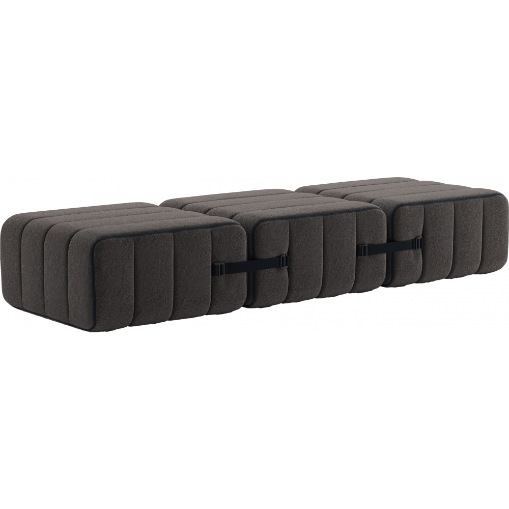 Aller guten Dinge! Drei Curt Module reichen schon für die eine oder andere Spielerei. Ein kleiner asymmetrischer Sessel, eine Bank, eine Liege, ein Gästebett oder drei einzelne Hocker. Mit dreierlei Modulen wird aus Curt zwar noch kein Sofasystem, aber Modular und Flexibel ist es allemal.Im Inneren eines jeden Curt Moduls findet sich nicht nur ein stabiler mit Polstergurten bespannter Sperrholzrahmen, sondern auch eine aus drei unterschiedlichen Schichten bestehende Kaltschaumpolsterung. Contract: Alle Materialien können auf Wunsch für den Einsatz in Hotels oder öffentlichen Gebäuden ausgerüstet werden.