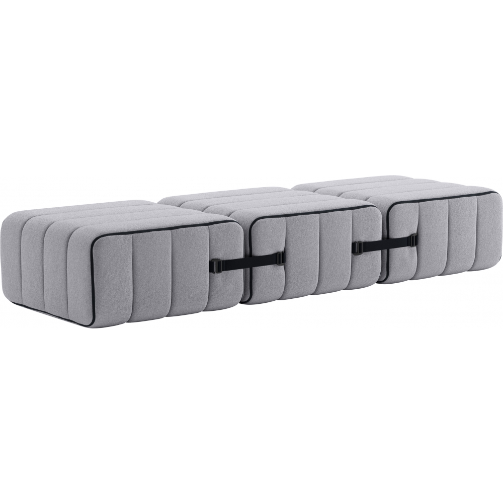 Aller guten Dinge! Drei Curt Module reichen schon für die eine oder andere Spielerei. Ein kleiner asymmetrischer Sessel, eine Bank, eine Liege, ein Gästebett oder drei einzelne Hocker. Mit dreierlei Modulen wird aus Curt zwar noch kein Sofasystem, aber Modular und Flexibel ist es allemal.Im Inneren eines jeden Curt Moduls findet sich nicht nur ein stabiler mit Polstergurten bespannter Sperrholzrahmen, sondern auch eine aus drei unterschiedlichen Schichten bestehende Kaltschaumpolsterung. Contract: Alle Materialien können auf Wunsch für den Einsatz in Hotels oder öffentlichen Gebäuden ausgerüstet werden.