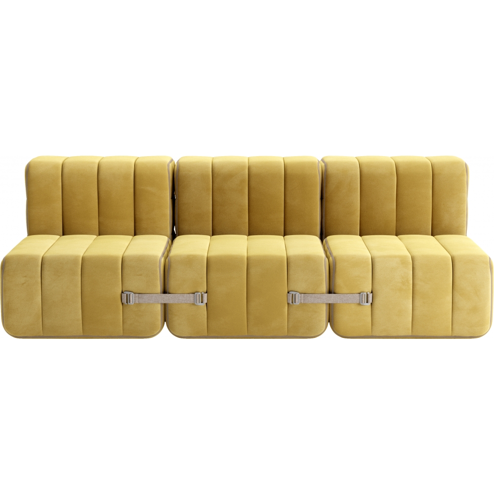 Ein Schlafsofa, wie langweilig! Von wegen langweilig. Wieviele Konfigurationen man mit sechs Curt Modulen gestalten kann, haben wir aus Faulheit gar nicht mehr berechnet. Zweifellos, mit sechs Modulen ist das Modulare Sofasystem auch ein klassisches Schlafsofa. Aber eben auch ein Zweisitzer mit Armlehnen, eine Doppelliege, drei Sessel, eine rechte oder linke Meridienne, eine Sternförmige Sitzlandschaft und so vieles mehr.Im Inneren eines jeden Curt Moduls findet sich nicht nur ein stabiler mit Polstergurten bespannter Sperrholzrahmen, sondern auch eine aus drei unterschiedlichen Schichten bestehende Kaltschaumpolsterung. Contract: Alle Materialien können auf Wunsch für den Einsatz in Hotels oder öffentlichen Gebäuden ausgerüstet werden.