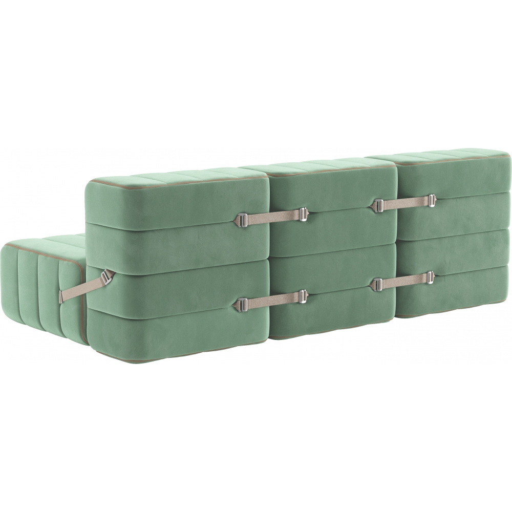 Ein Schlafsofa, wie langweilig! Von wegen langweilig. Wieviele Konfigurationen man mit sechs Curt Modulen gestalten kann, haben wir aus Faulheit gar nicht mehr berechnet. Zweifellos, mit sechs Modulen ist das Modulare Sofasystem auch ein klassisches Schlafsofa. Aber eben auch ein Zweisitzer mit Armlehnen, eine Doppelliege, drei Sessel, eine rechte oder linke Meridienne, eine Sternförmige Sitzlandschaft und so vieles mehr.Im Inneren eines jeden Curt Moduls findet sich nicht nur ein stabiler mit Polstergurten bespannter Sperrholzrahmen, sondern auch eine aus drei unterschiedlichen Schichten bestehende Kaltschaumpolsterung. Contract: Alle Materialien können auf Wunsch für den Einsatz in Hotels oder öffentlichen Gebäuden ausgerüstet werden.