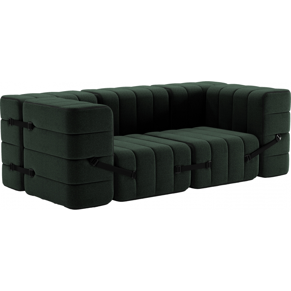 Die klassische sieben. Warum sollte man aus einem Modularen Sofa nicht auch ein klassisches Sofa machen können. So eine richtig kompakt gemütliche Couch mit vollen Armlehnen. Und warum sollte man die kompakt gemütliche Couch nicht auch zu einem kleinen Ecksofa oder einer Chaiselongue machen können, oder zu ach so vielen anderen Konfigurationen. Ja, warum eigentlich nicht, wenn man so ein unfassbar flexibles, modulares Sofasystem hat.Im Inneren eines jeden Curt Moduls findet sich nicht nur ein stabiler mit Polstergurten bespannter Sperrholzrahmen, sondern auch eine aus drei unterschiedlichen Schichten bestehende Kaltschaumpolsterung. Contract: Alle Materialien können auf Wunsch für den Einsatz in Hotels oder öffentlichen Gebäuden ausgerüstet werden.