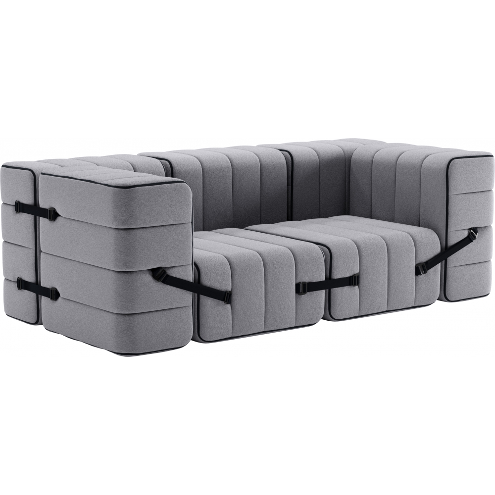 Die klassische sieben. Warum sollte man aus einem Modularen Sofa nicht auch ein klassisches Sofa machen können. So eine richtig kompakt gemütliche Couch mit vollen Armlehnen. Und warum sollte man die kompakt gemütliche Couch nicht auch zu einem kleinen Ecksofa oder einer Chaiselongue machen können, oder zu ach so vielen anderen Konfigurationen. Ja, warum eigentlich nicht, wenn man so ein unfassbar flexibles, modulares Sofasystem hat.Im Inneren eines jeden Curt Moduls findet sich nicht nur ein stabiler mit Polstergurten bespannter Sperrholzrahmen, sondern auch eine aus drei unterschiedlichen Schichten bestehende Kaltschaumpolsterung. Contract: Alle Materialien können auf Wunsch für den Einsatz in Hotels oder öffentlichen Gebäuden ausgerüstet werden.