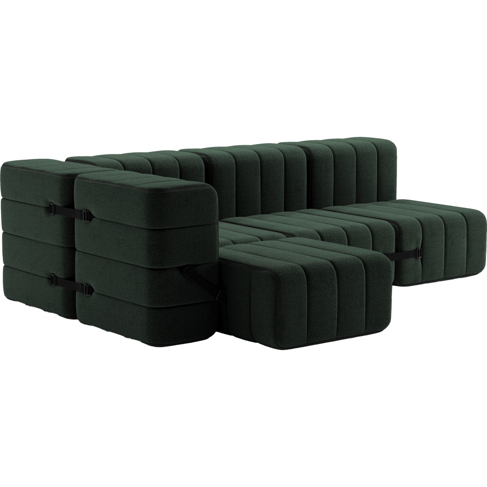 In allen neun Ecken. Neun Module sind das Familien-Set im Modulsofasystem. Ein Eck-Sofa für vier, oder, wenn etwas Abstand gefragt ist, auch vier einzelne Sessel. Auch eine Ausweichschlafoption steckt in diesem Set. Zur not sogar für drei Personen. Aber bei einem echt modularen Sofasystem hört es damit natürlich noch lange nicht aus.Im Inneren eines jeden Curt Moduls findet sich nicht nur ein stabiler mit Polstergurten bespannter Sperrholzrahmen, sondern auch eine aus drei unterschiedlichen Schichten bestehende Kaltschaumpolsterung. Contract: Alle Materialien können auf Wunsch für den Einsatz in Hotels oder öffentlichen Gebäuden ausgerüstet werden.