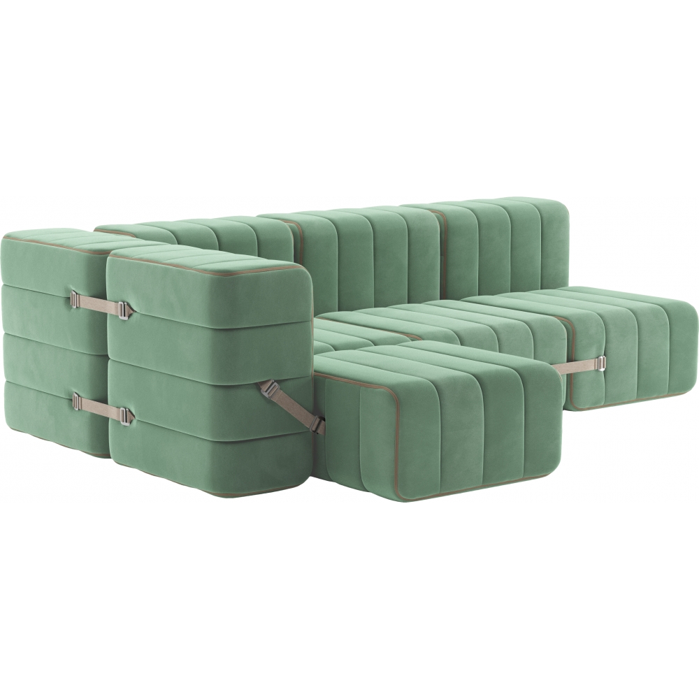 In allen neun Ecken. Neun Module sind das Familien-Set im Modulsofasystem. Ein Eck-Sofa für vier, oder, wenn etwas Abstand gefragt ist, auch vier einzelne Sessel. Auch eine Ausweichschlafoption steckt in diesem Set. Zur not sogar für drei Personen. Aber bei einem echt modularen Sofasystem hört es damit natürlich noch lange nicht aus.Im Inneren eines jeden Curt Moduls findet sich nicht nur ein stabiler mit Polstergurten bespannter Sperrholzrahmen, sondern auch eine aus drei unterschiedlichen Schichten bestehende Kaltschaumpolsterung. Contract: Alle Materialien können auf Wunsch für den Einsatz in Hotels oder öffentlichen Gebäuden ausgerüstet werden.