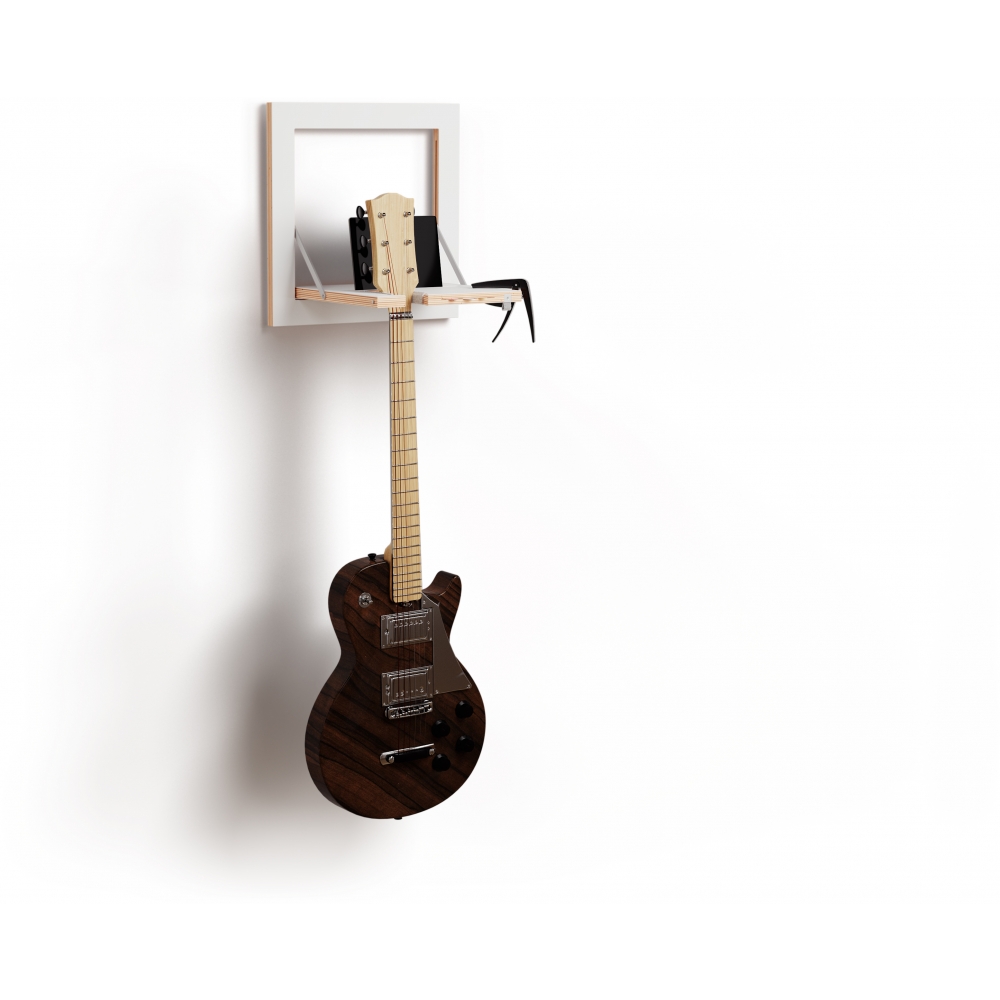 Häng the Guitar! Die Nachbarn werden sich freuen. Jetzt ist die Gitarre erstmals an der Wand besser in Szene gesetzt als in der Hand des Gitarristen. Und auch wenn nur 20mm flach, bietet unsere Gitarren Wand-Aufhängung Stauraum für bis zu 7 Plektren. Unglaublich, ein wahres Raumwunder. Ernsthaft, Guitar Häng hängt nicht nur die Gitarre, es ist eine Gitarren-Station mit iPad/Notenständer, Aufnahme für Capodaster und Stimmgerät und Ablage für Schnapsglas und Aschebescher. Rock on!