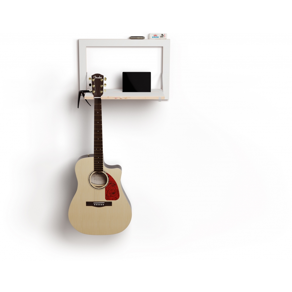 Häng the Guitar! Die Nachbarn werden sich freuen. Jetzt ist die Gitarre erstmals an der Wand besser in Szene gesetzt als in der Hand des Gitarristen. Und auch wenn nur 20mm flach, bietet unsere Gitarren Wand-Aufhängung Stauraum für bis zu 7 Plektren. Unglaublich, ein wahres Raumwunder. Ernsthaft, Guitar Häng hängt nicht nur die Gitarre, es ist eine Gitarren-Station mit iPad/Notenständer, Aufnahme für Capodaster und Stimmgerät und Ablage für Schnapsglas und Aschebescher. Rock on!