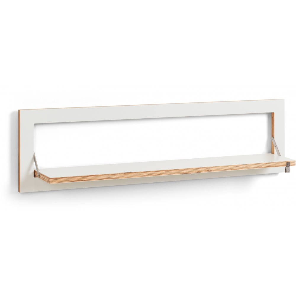 Das wahrscheinlich längste Klappregal der Welt. Leicht wie eine Feder kommt es daher, das Panorama-Regal im Fläpps Universum. Als Küchenregal für Essig, Öl, Tasse, Teller und die gesamte Gewürzsammlung oder als Wohnzimmerregal für ach so viele Bücher oder Deko; überm Bett, als Schlafzimmerregal mit sehr viel Abstellvermögen oder als Flurregal – mit dem Add-On wird’s zum Schuhregal. Und wie es sich für ein klappbares Wandregal gehört: es kleidet die Wand. Ob aufgeklappt oder eingeklappt. Maße: Eingeklappt 100 x 27 x 2 cm + 1 cm Wandhalterung, Arbeitsfläche ausgeklappt 90 x 17 cm, Materialien: Sperrholz Birke beschichtet mit durchgefärbtem HPL, Edelstahl, Belastbarkeit: 25 kg.
