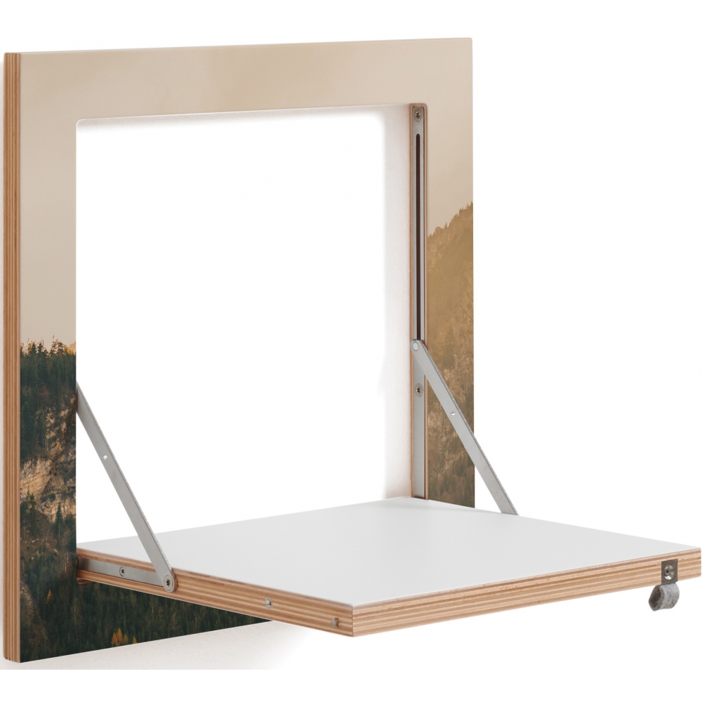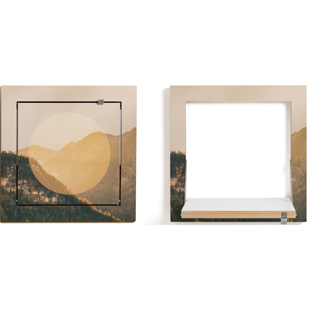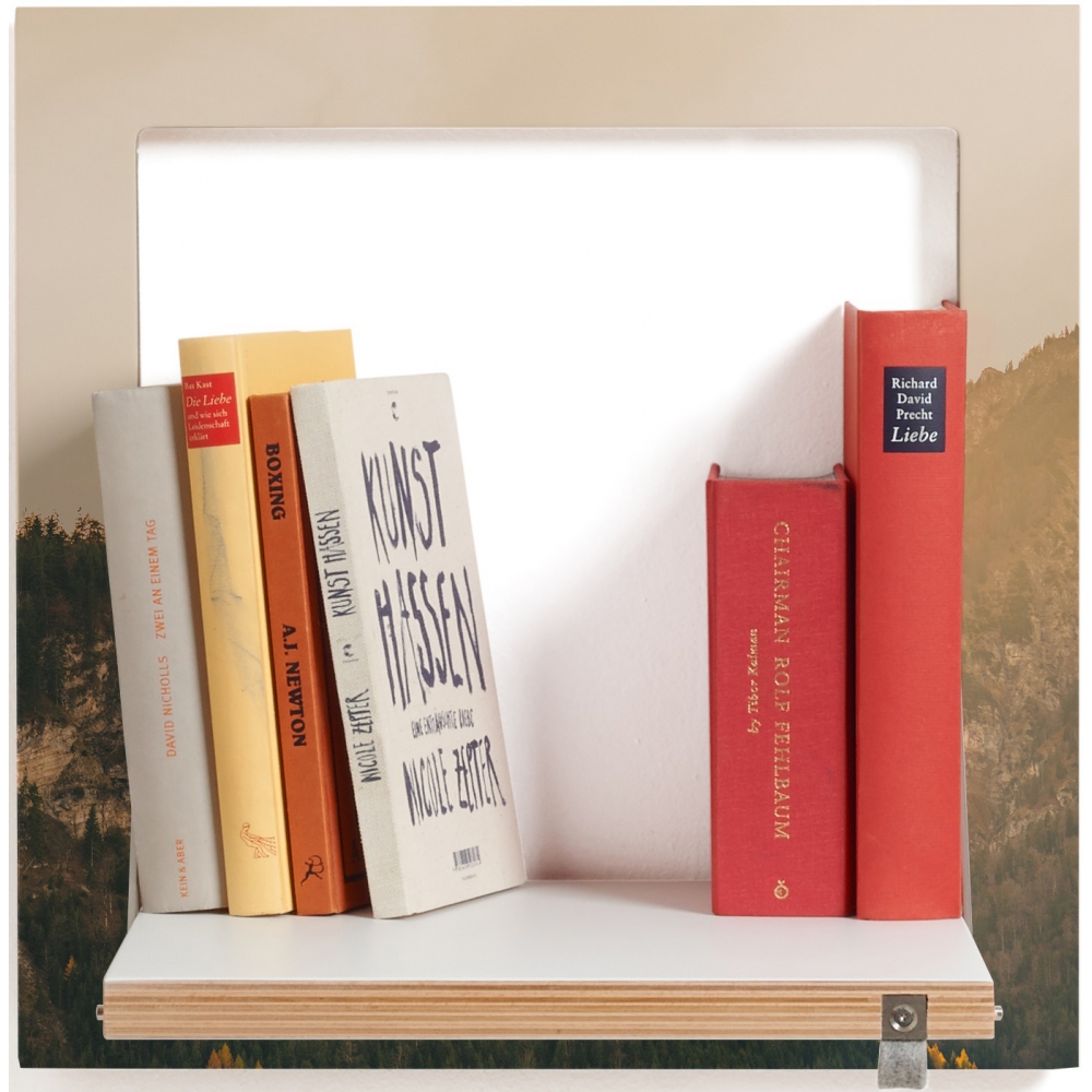 Das Kleine. Quadratisch wie ein Sofakissen, nur nicht so dick. Passt überall hin, auch in das kleinste Regalkonzept. Es ist ein Flurregal, ein Nachttisch, ein Vasenhalter, ein Kochbuchregal oder einfach nur ein Quadrat an der Wand. Oho. Maße: Eingeklappt 40 x 40 x 2 cm + 1 cm Wandhalterung, Regalfäche ausgeklappt 30 x 30 cm, Materialien: Sperrholz Birke beschichtet mit durchgefärbtem HPL, Edelstahl, Belastbarkeit: 25 kg.