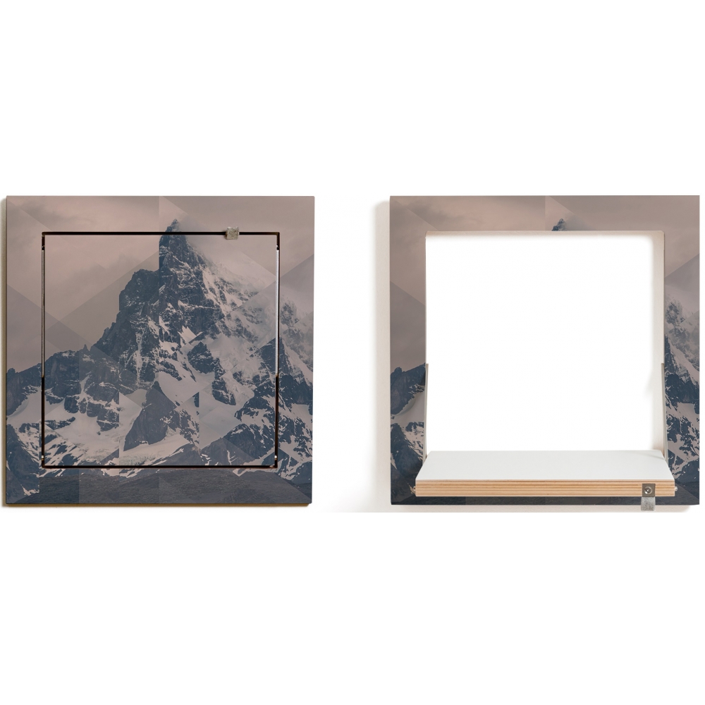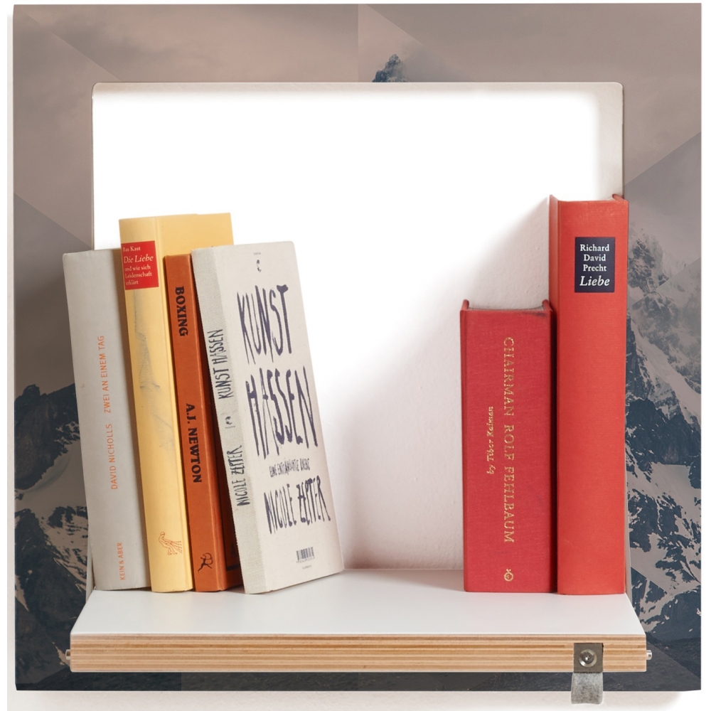 Das Kleine. Quadratisch wie ein Sofakissen, nur nicht so dick. Passt überall hin, auch in das kleinste Regalkonzept. Es ist ein Flurregal, ein Nachttisch, ein Vasenhalter, ein Kochbuchregal oder einfach nur ein Quadrat an der Wand. Oho. Maße: Eingeklappt 40 x 40 x 2 cm + 1 cm Wandhalterung, Regalfäche ausgeklappt 30 x 30 cm, Materialien: Sperrholz Birke beschichtet mit durchgefärbtem HPL, Edelstahl, Belastbarkeit: 25 kg.