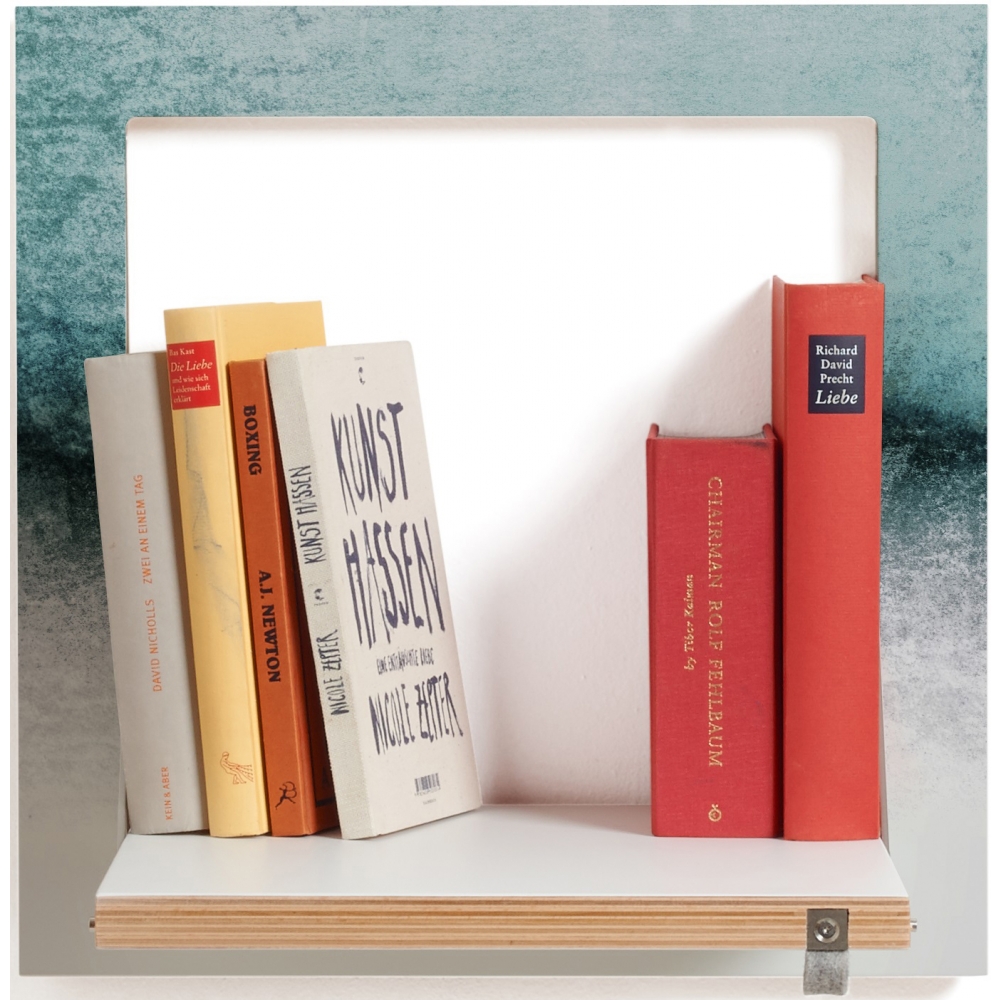 Das Kleine. Quadratisch wie ein Sofakissen, nur nicht so dick. Passt überall hin, auch in das kleinste Regalkonzept. Es ist ein Flurregal, ein Nachttisch, ein Vasenhalter, ein Kochbuchregal oder einfach nur ein Quadrat an der Wand. Oho. Maße: Eingeklappt 40 x 40 x 2 cm + 1 cm Wandhalterung, Regalfäche ausgeklappt 30 x 30 cm, Materialien: Sperrholz Birke beschichtet mit durchgefärbtem HPL, Edelstahl, Belastbarkeit: 25 kg.