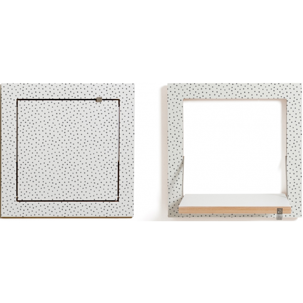 Das Kleine. Quadratisch wie ein Sofakissen, nur nicht so dick. Passt überall hin, auch in das kleinste Regalkonzept. Es ist ein Flurregal, ein Nachttisch, ein Vasenhalter, ein Kochbuchregal oder einfach nur ein Quadrat an der Wand. Oho. Maße: Eingeklappt 40 x 40 x 2 cm + 1 cm Wandhalterung, Regalfäche ausgeklappt 30 x 30 cm, Materialien: Sperrholz Birke beschichtet mit durchgefärbtem HPL, Edelstahl, Belastbarkeit: 25 kg.