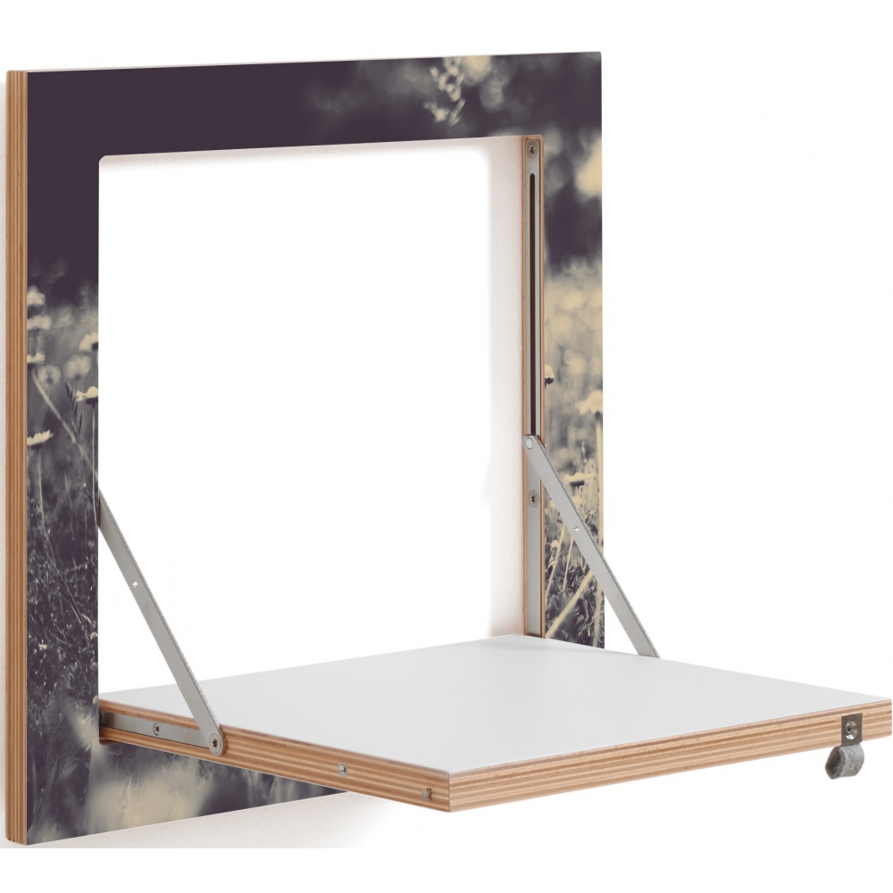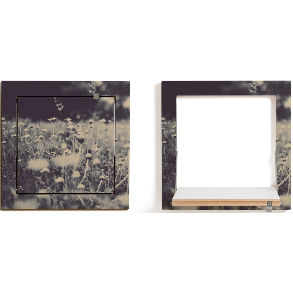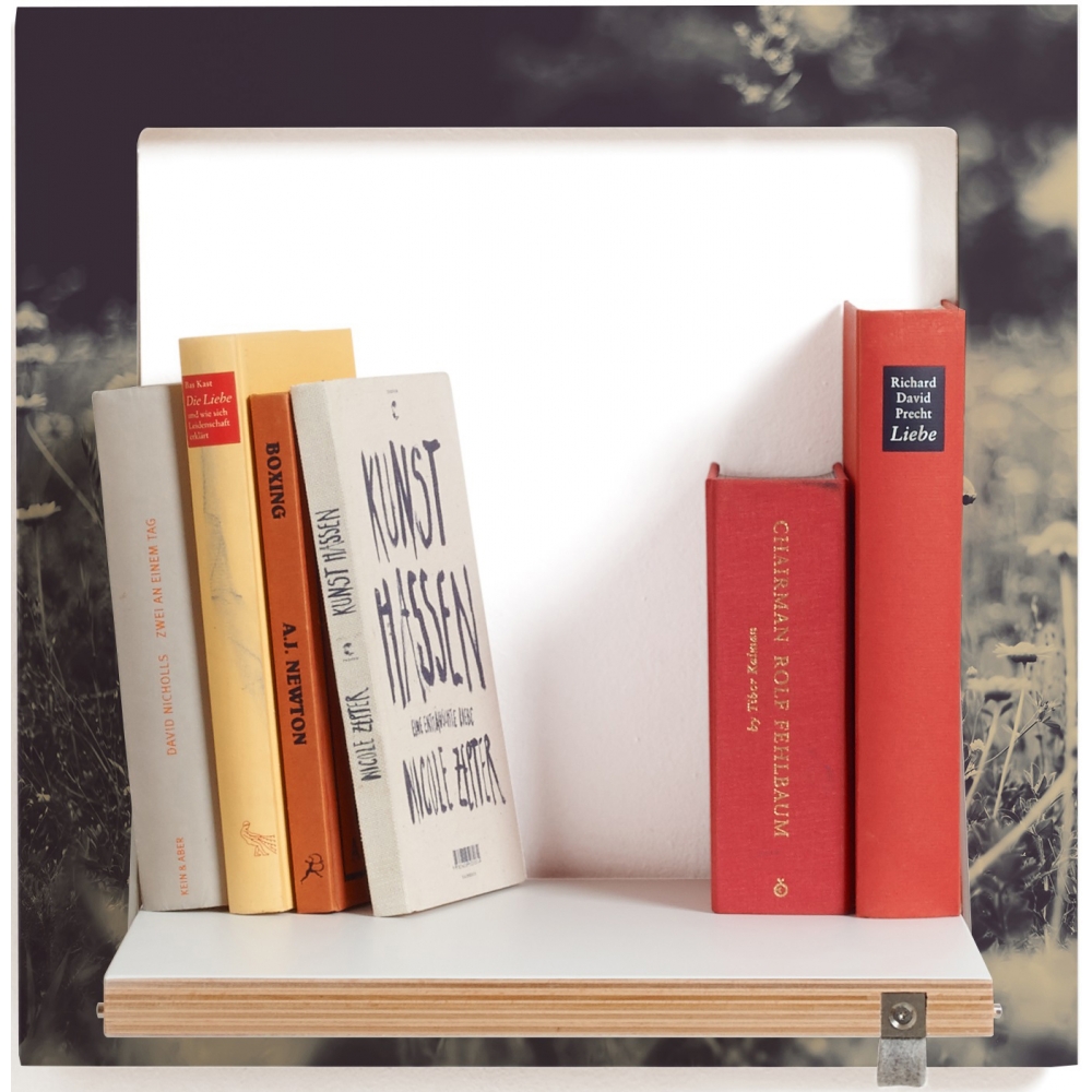 Das Kleine. Quadratisch wie ein Sofakissen, nur nicht so dick. Passt überall hin, auch in das kleinste Regalkonzept. Es ist ein Flurregal, ein Nachttisch, ein Vasenhalter, ein Kochbuchregal oder einfach nur ein Quadrat an der Wand. Oho. Maße: Eingeklappt 40 x 40 x 2 cm + 1 cm Wandhalterung, Regalfäche ausgeklappt 30 x 30 cm, Materialien: Sperrholz Birke beschichtet mit durchgefärbtem HPL, Edelstahl, Belastbarkeit: 25 kg.