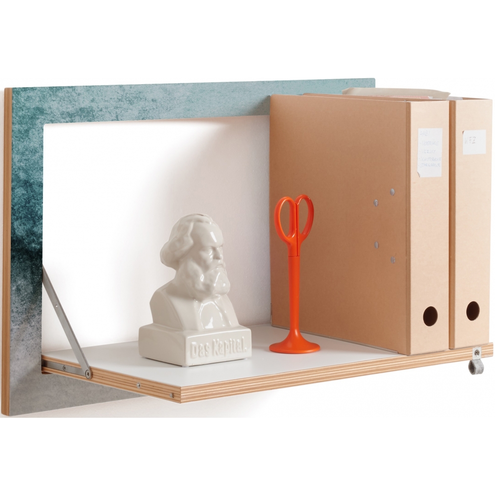 Das Mittlere. Das mittelgroße Fläpps Regal erfüllt gerne Standards. Im 3:2 Format gehalten versteht es sich bestens mit den kritischen Augen von Fotografen. Mit seinen schmalen 60cm super mit Einbauküchen. Aber natürlich auch mit dem allseits geliebten Leitzordner und all dem wofür Stabile Regale halt so gemacht sind... Maße: Eingeklappt 60 x 40 x 2 cm + 1 cm Wandhalterung, Regalfäche ausgeklappt 50 x 30 cm, Materialien: Sperrholz Birke beschichtet mit durchgefärbtem HPL, Edelstahl Belastbarkeit: 25 kg.