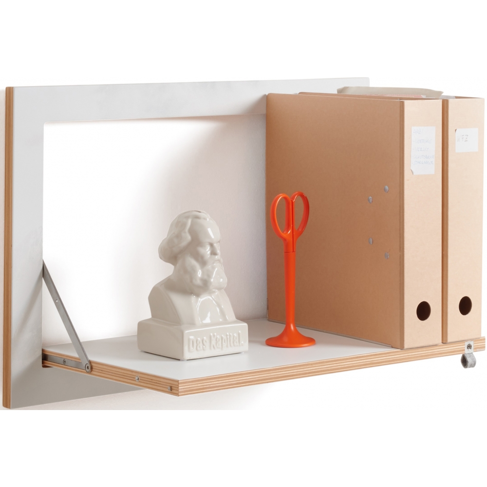 Das Mittlere. Das mittelgroße Fläpps Regal erfüllt gerne Standards. Im 3:2 Format gehalten versteht es sich bestens mit den kritischen Augen von Fotografen. Mit seinen schmalen 60cm super mit Einbauküchen. Aber natürlich auch mit dem allseits geliebten Leitzordner und all dem wofür Stabile Regale halt so gemacht sind... Maße: Eingeklappt 60 x 40 x 2 cm + 1 cm Wandhalterung, Regalfäche ausgeklappt 50 x 30 cm, Materialien: Sperrholz Birke beschichtet mit durchgefärbtem HPL, Edelstahl Belastbarkeit: 25 kg.