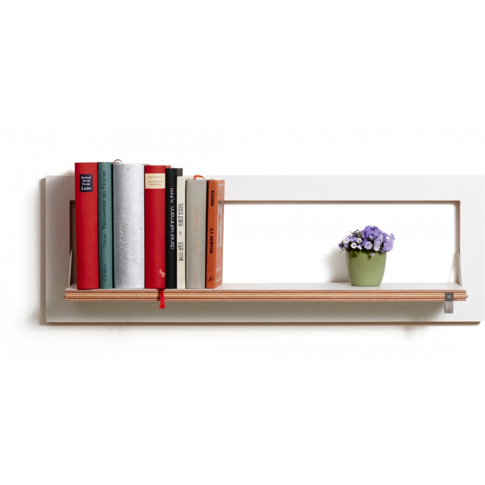 Das Schlanke. Reduzierter geht es nicht. Dieses schmale Bord treibt Compact Living auf die Spitze. Mit nur 27 cm Höhe passt es unter jede noch so niedrige Decke und in jeden noch so schmalen Flur. Zum Beispiel als auffallend zurückhaltender Platz für Lieblingsbücher. Auch für Lesemuffel. Maße: Eingeklappt 80 x 27 x 2 cm + 1 cm Wandhalterung, Regalfäche ausgeklappt 70 x 17 cm, Materialien: Sperrholz Birke beschichtet mit durchgefärbtem HPL, Edelstahl Belastbarkeit: 25 kg.