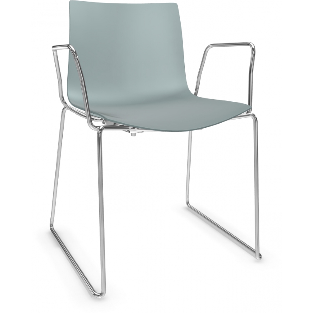 x  Arper - Catifa 46 0278 Kufenstuhl mit Armlehnen einfarbig Petrol | Verchromt wurde in Ihren Warenkorb gelegt.