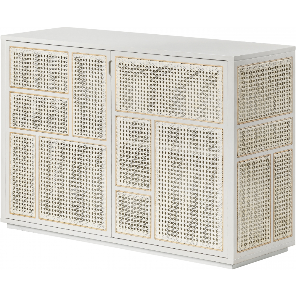 Birkenholz massiv, weiß lasiert; MDF lackiert; Cane-Geflecht