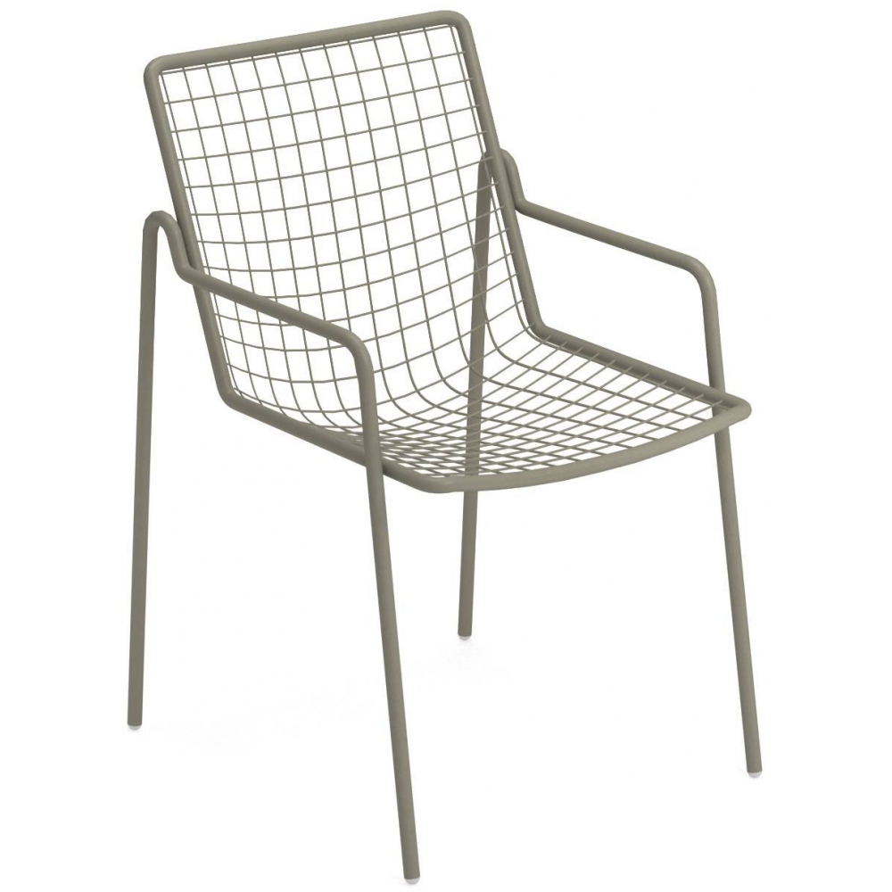RIO R50 ist eine komplette Sitzmöbelkollektion, bestehend aus Stühlen mit und ohne Armlehne für den Essbereich, einem Lounge-Sessel (auch in der Schaukelstuhl-Version erhältlich), einem Hocker und einem niedrigen Couchtisch. Das Gestell der Kollektion RIO R50 besteht aus ASFORM-Stahlrohr, einem hochqualitativen Stahl mit ausgezeichneten mechanischen Eigenschaften, der auch höheren Belastungen standhält. Die Biegung des Stahlrohrs verleiht dem Stuhl sein charakteristisches Kennzeichen in der Form eines „R“ durch das Zusammentreffen von Lehne und Sitzfläche. Alle strukturellen Schweißnähte werden im MIG-Verfahren ausgeführt, was dem Stuhl eine größere Belastbarkeit verleiht und die Rostbildung reduziert. Das Stahlgitter der Sitzfläche wird mit dem Gestell durch Elektroschweißung verbunden, denn dieses Verfahren erlaubt eine höhere Präzision. Wie auch alle anderen EMU-Produkte aus Stahl, werden die Elemente der Kollektion RioR50 vorab einer KTL-Beschichtung und nachfolgend einer wärmehärtenden Pulverbeschichtung unterzogen: das Resultat ist eine gleichmäßige, zuverlässig haftende und strapazierfähige Lackierung. Nylonkappen schützen die Stuhlfüße und erlauben ein problemloses Umstellen.