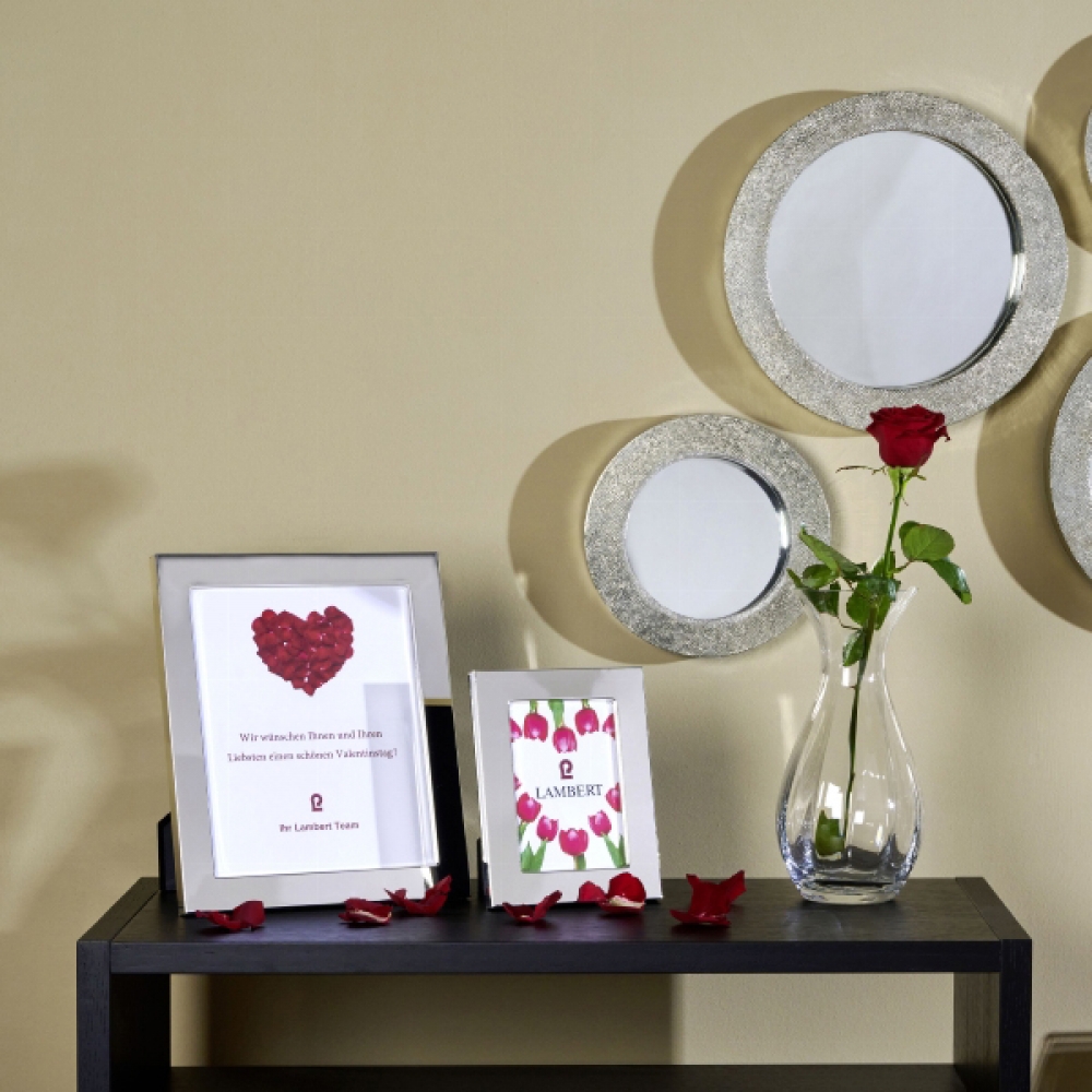Spiegel setzen Akzente und Glanz in Räume, erweitern diese und bringen Tiefe und Licht in dunkle Ecken. Einzeln und in Gruppen gehängt entfaltet Ronda immer seine Wirkung. Der breite und extra tiefe Rahmen dieser Kleinode wird in alter Technik mit feinem, silberhaltigem Metall beschlagen. Diese Technik wird heute noch im märchenhaften Rajastan von kleinen Manufakturen gepflegt. Leichte Variationen in der Oberflächenbearbeitung sind ein Zeichen dieser Handwerkskunst, jeder einzelne Arbeiter hat seinen eigenen Rhythmus und seine Handschrift.