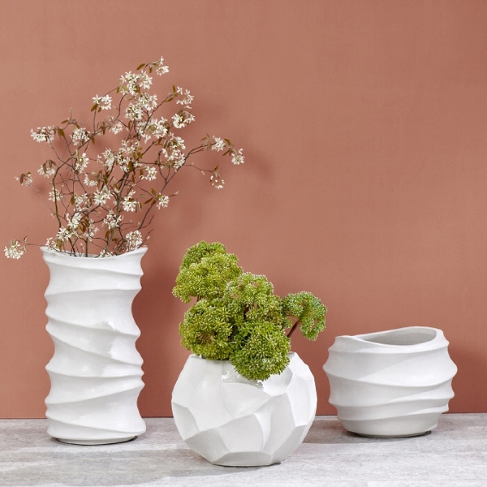 Eine der ältesten Handwerkstechniken der Menschheit ist die Herstellung keramischer Gefäße, an der sich im Grundsatz in den Jahrtausenden nichts verändert hat. Töpfe und Gefäße werden heute noch in ähnlichem Verfahren produziert. Die Sealine Gefäße werden handgefertigt aus einem hochgebrannten Scherben. Inspiriert von natürlichen Formen, wie den Wellenlinien im Meeresboden und einer Algenart unter dem Mikroskop betrachtet, hat Lambert die Sealine Gefäße entworfen. Der skulpturale, handwerkliche Charakter von Sealine wirkt in jeder Umgebung. Sealine ist als Übertopf für den Außenbereich gedacht. Zur Nutzung als dekoratives Gefäß im Innenbereich muss ein kleinerer Glas- oder Kunststoffeinsatz genutzt werden, da die Gefäße eine Bohrung haben, um sie auch bepflanzen zu können.