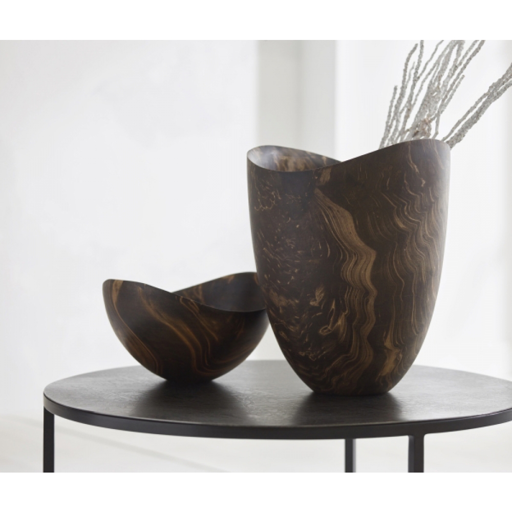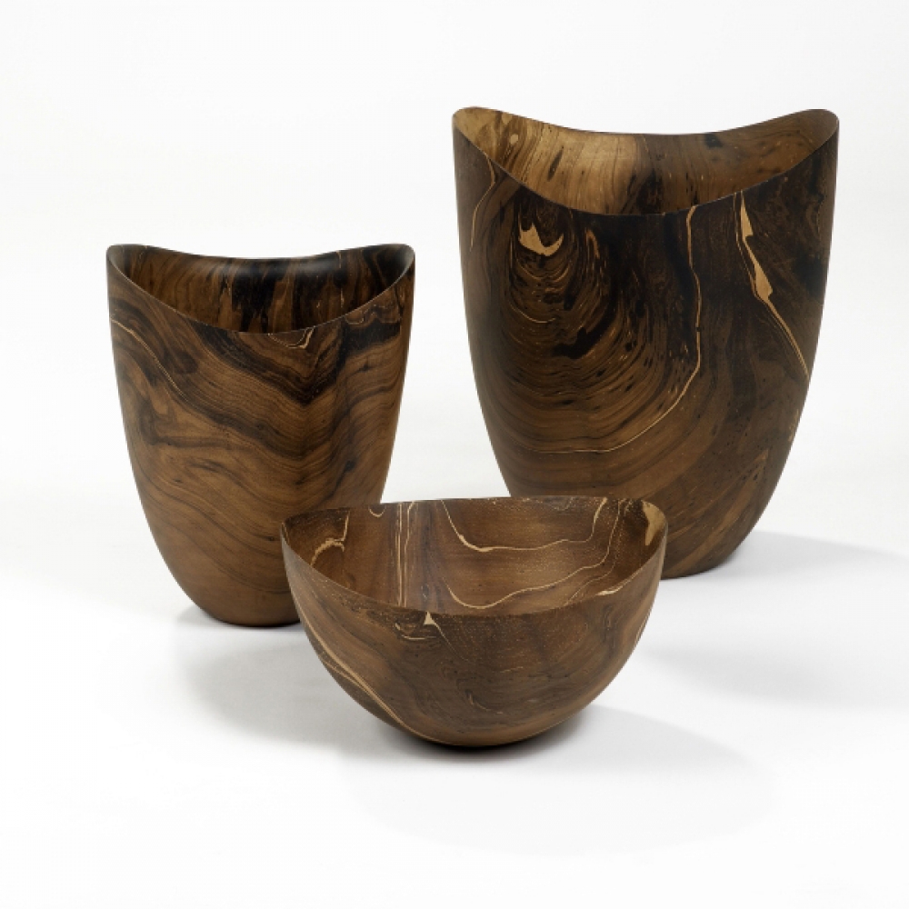 Die immergrünen Mangobäume erreichen in Asien imposante Wuchshöhen von bis zu 45 Metern wobei der Stamm auf einen Durchmesser von 10 Metern heranwachsen kann. Aus diesen mächtigen Baumstämmen wurden diese einzigartigen Objekte für Lambert handgefertigt. Die kontrastreiche Maserung changiert in warmen Holztönen und macht jedes dieser Gefäße zu einem natürlich gewachsenen Unikat. Hinweis: Die Gefäße eignen sich nicht zum Befüllen mit Wasser. Bitte verwenden Sie einen Glaseinsatz, wenn Sie Xaver als Vase nutzen möchten.