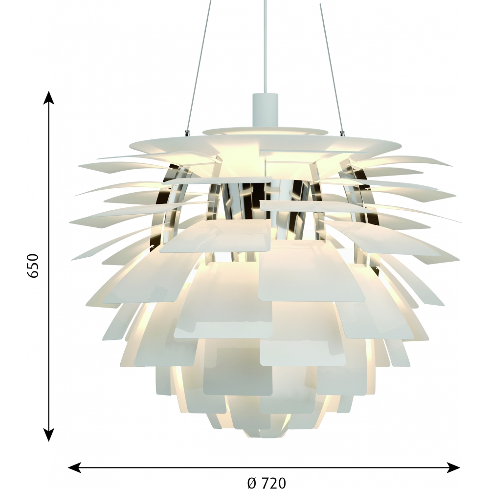 Die PH Artichoke wurde 1958 von Poul Henningsen für das moderne Restaurant Langelinie Pavillonen in Kopenhagen entworfen, wo sie auch heute noch die Gäste verzaubert. Die PH Artichoke wird mit ihrem berühmten, einzigartigen und plastischen Design international als Design-Ikone angesehen. Die Leuchte verfügt über 72 Blätter, die so angeordnet sind, dass sie aus jedem Blickwinkel vollkommen blendfreies Licht abstrahlt. Um ein hohes Maß an Qualität sicherzustellen, erfolgt ein Großteil der Herstellung immer noch per Hand. Die renommierte Leuchte wird bis heute mit der ursprünglichen Kupferoberfläche vervollständigt, die Räume in ein warmes Licht taucht. Die PH-Artichoke-Familie wurde um weitere Leuchten mit mattem oder glänzendem Stahl sowie weiß lackiertem Metall ergänzt. Auf diese Weise wird das vielseitige, zeitlose Design der Leuchte besonders betont.