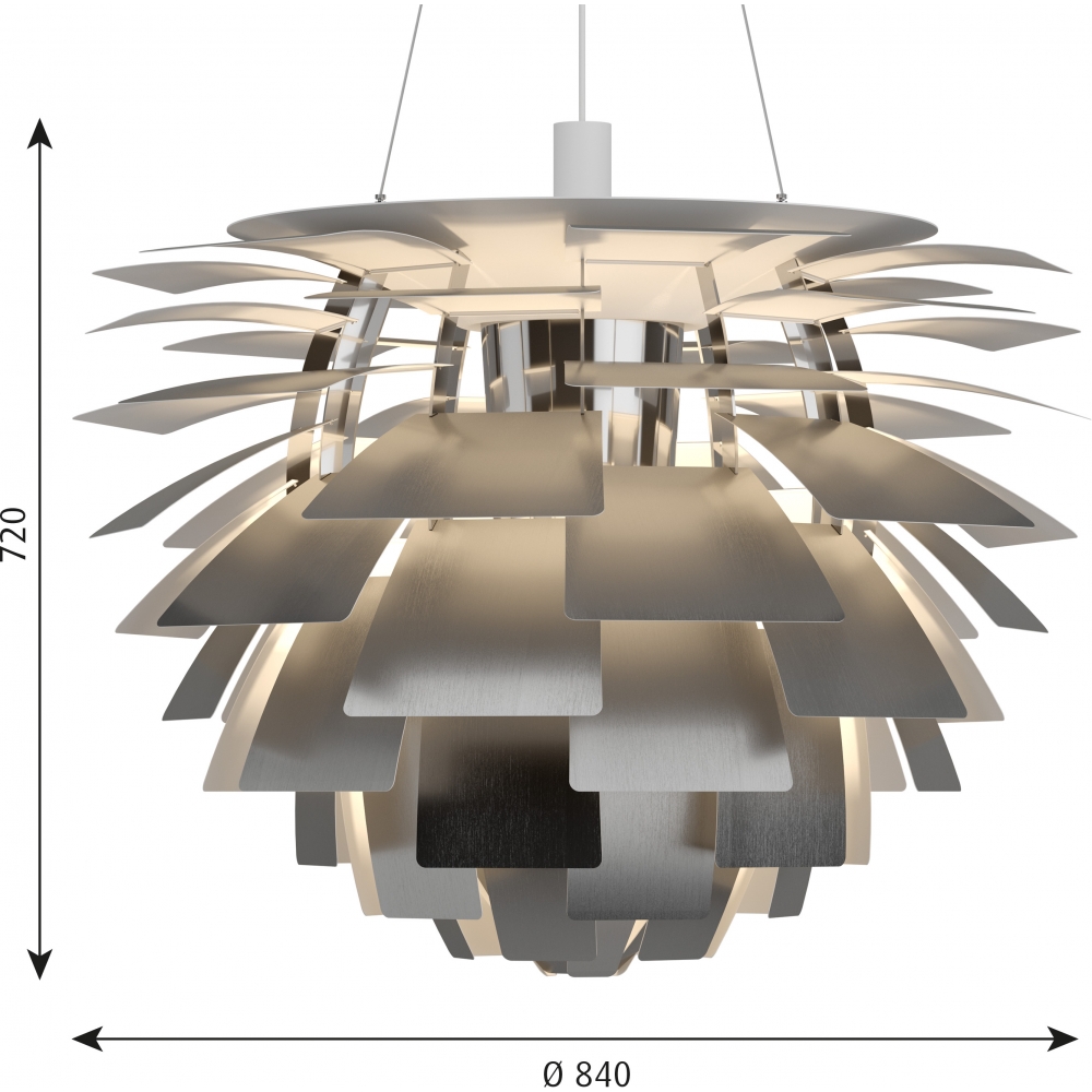 Die PH Artichoke wurde 1958 von Poul Henningsen für das moderne Restaurant Langelinie Pavillonen in Kopenhagen entworfen, wo sie auch heute noch die Gäste verzaubert. Die PH Artichoke wird mit ihrem berühmten, einzigartigen und plastischen Design international als Design-Ikone angesehen. Die Leuchte verfügt über 72 Blätter, die so angeordnet sind, dass sie aus jedem Blickwinkel vollkommen blendfreies Licht abstrahlt. Um ein hohes Maß an Qualität sicherzustellen, erfolgt ein Großteil der Herstellung immer noch per Hand. Die renommierte Leuchte wird bis heute mit der ursprünglichen Kupferoberfläche vervollständigt, die Räume in ein warmes Licht taucht. Die PH-Artichoke-Familie wurde um weitere Leuchten mit mattem oder glänzendem Stahl sowie weiß lackiertem Metall ergänzt. Auf diese Weise wird das vielseitige, zeitlose Design der Leuchte besonders betont.