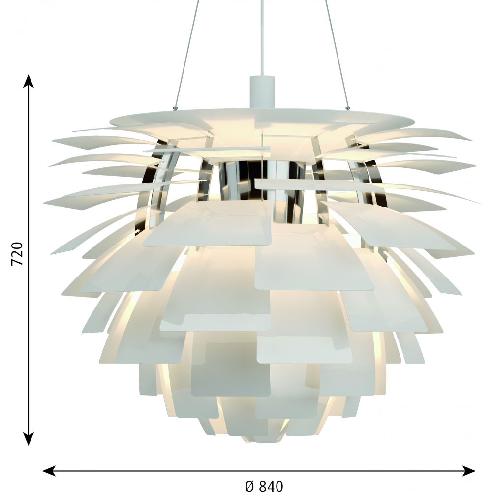 Die PH Artichoke wurde 1958 von Poul Henningsen für das moderne Restaurant Langelinie Pavillonen in Kopenhagen entworfen, wo sie auch heute noch die Gäste verzaubert. Die PH Artichoke wird mit ihrem berühmten, einzigartigen und plastischen Design international als Design-Ikone angesehen. Die Leuchte verfügt über 72 Blätter, die so angeordnet sind, dass sie aus jedem Blickwinkel vollkommen blendfreies Licht abstrahlt. Um ein hohes Maß an Qualität sicherzustellen, erfolgt ein Großteil der Herstellung immer noch per Hand. Die renommierte Leuchte wird bis heute mit der ursprünglichen Kupferoberfläche vervollständigt, die Räume in ein warmes Licht taucht. Die PH-Artichoke-Familie wurde um weitere Leuchten mit mattem oder glänzendem Stahl sowie weiß lackiertem Metall ergänzt. Auf diese Weise wird das vielseitige, zeitlose Design der Leuchte besonders betont.