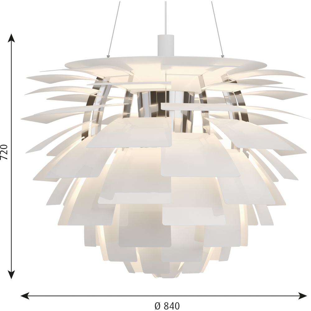 Die PH Artichoke wurde 1958 von Poul Henningsen für das moderne Restaurant Langelinie Pavillonen in Kopenhagen entworfen, wo sie auch heute noch die Gäste verzaubert. Die PH Artichoke wird mit ihrem berühmten, einzigartigen und plastischen Design international als Design-Ikone angesehen. Die Leuchte verfügt über 72 Blätter, die so angeordnet sind, dass sie aus jedem Blickwinkel vollkommen blendfreies Licht abstrahlt. Um ein hohes Maß an Qualität sicherzustellen, erfolgt ein Großteil der Herstellung immer noch per Hand. Die renommierte Leuchte wird bis heute mit der ursprünglichen Kupferoberfläche vervollständigt, die Räume in ein warmes Licht taucht. Die PH-Artichoke-Familie wurde um weitere Leuchten mit mattem oder glänzendem Stahl sowie weiß lackiertem Metall ergänzt. Auf diese Weise wird das vielseitige, zeitlose Design der Leuchte besonders betont.