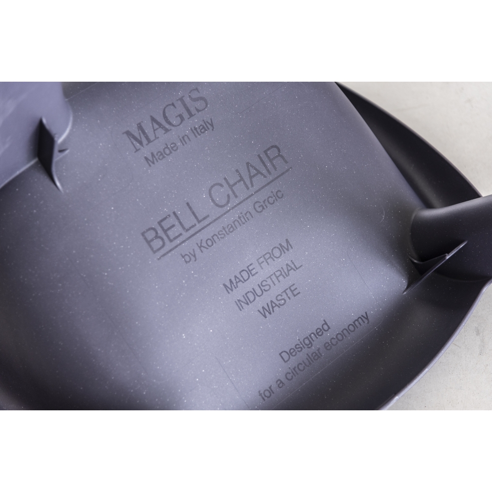 Der Bell Chair ist in drei Farben erhältlich - Sunrise, High Noon und Midnight. Er wird aus recyceltem Polypropylen hergestellt, das aus den Abfällen der Magis-eigenen Möbelproduktion und der lokalen Autoindustrie gewonnen wird. Das patentierte Material schließt fast alle "jungfräulichen oder neuen" Materialien aus und kann nach Gebrauch wieder zu 100% recycelt werden. Auf diese Weise bildet der Bell Chair einen nahezu geschlossenen Materialkreislauf. Die Verantwortung des Designs endet nicht mit dem Produkt selbst. Magis entwickelte ein Logistikkonzept für den Bell Chair, um zusätzliche Ressourcen einzusparen. Dabei handelt es sich um eine speziell entworfene, wiederverwendbare Lieferpalette, auf der bis zu 24 Stühle gestapelt werden können. Dadurch wird weniger Verpackungsmaterial verbraucht, und der vertikale Stapel reduziert den Platzbedarf beim Transport. Gleichzeitig dient die Palette auch als Verkaufsdisplay für Einzelhandelspartner und besteht aus demselben recycelten Kunststoff wie der Stuhl. Der Bell Chair wurde unter dem Gesichtspunkt der Vielseitigkeit hergestellt und kann in Innenräumen, im Freien, für gewerbliche Zwecke, bei Veranstaltungen und in vielen anderen Bereichen eingesetzt werden. Er soll auf kreative, unkonventionelle und innovative Weise verwendet werden.