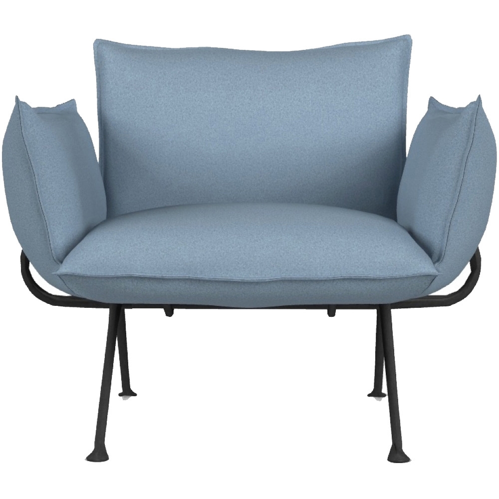 Material Gestell aus Schmiedeeisen, verzinkt oder mit Polyesterpulver lackiert. Kissen mit Stoff bezogen.
