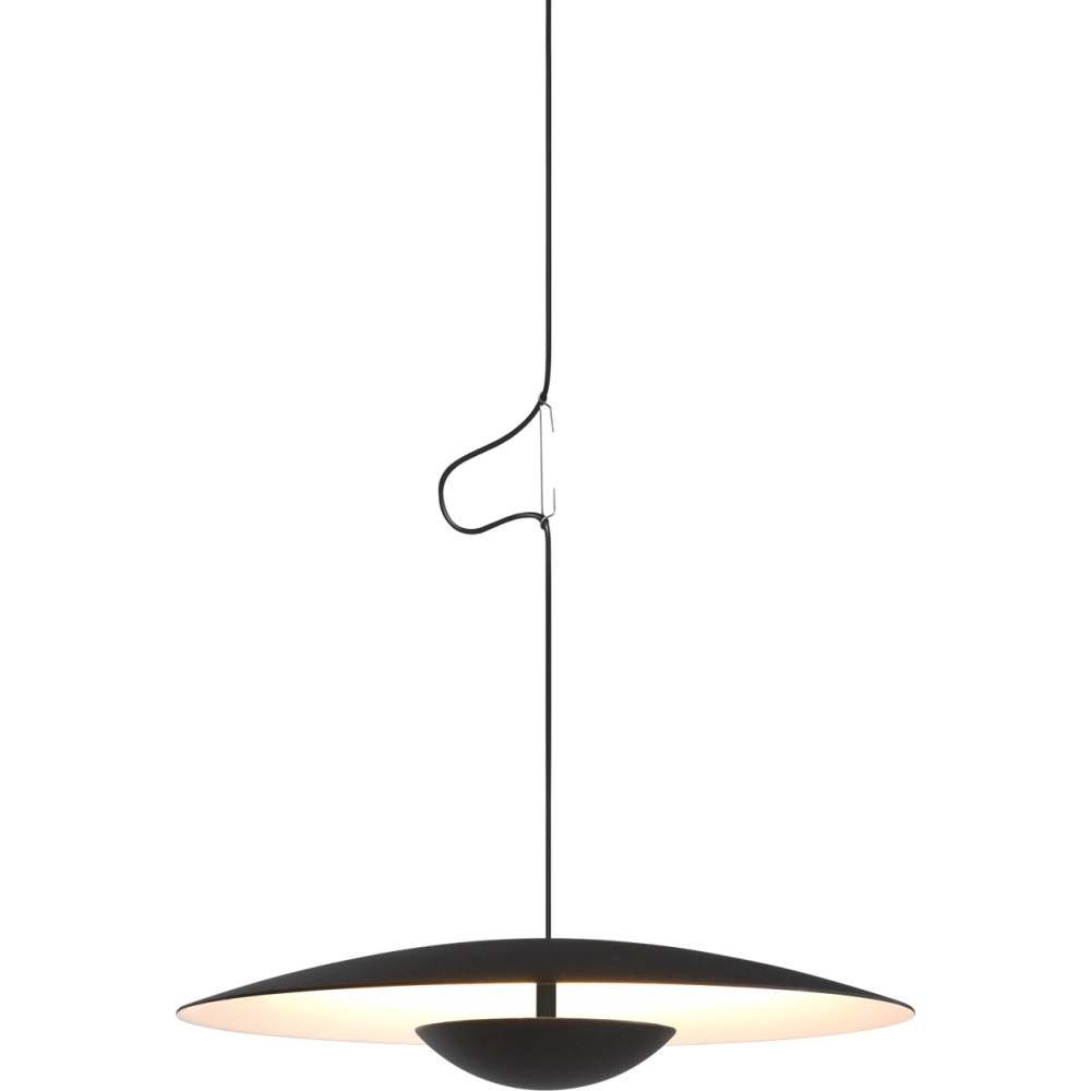 Schirm aus Schichtholz oder gebürstetem Aluminium. Kühlkörper aus Aluminiumdruckguss, matt schwarz lackiert. Stufenlos dimmbar über externen Dimmer.