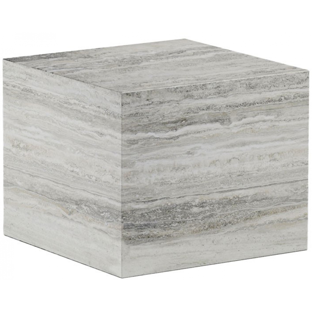 Cubism wird aus Travertinstein hergestellt und ist in zwei Größen erhältlich, die sich beide als Couchtische, Beistelltische und Sockel zum Ausstellen von Objekten eignen. Der Naturstein hat eine unregelmäßige Oberfläche mit kleinen Löchern und Unregelmäßigkeiten, die der geometrischen Form eine taktile Qualität verleihen.