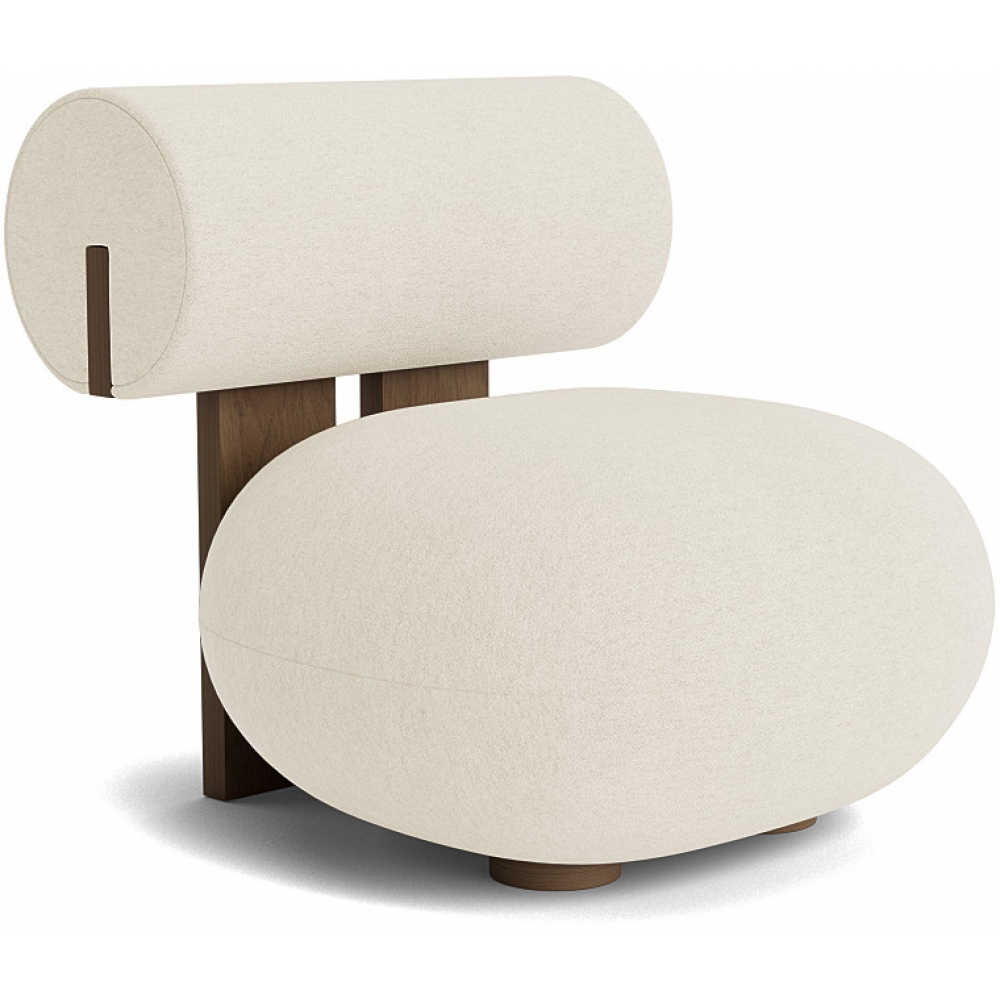 Das markante Holzprofil des Hippo Lounge Chair wirkt wie ein fast architektonisches Element, das in starkem Kontrast zu der abgerundeten, weichen Rücken- und Sitzfläche steht. Die Naht in der Mitte der Sitzfläche ist bewusst hier platziert, um die gewünschte runde Form für Hippo Lounge Chair zu schaffen. Der Loungesessel erlaubt eine umgekehrte Sitzposition, und weil es nicht nur eine Art zu sitzen gibt, stellt er höhere Anforderungen an die Konstruktion. Die Verstärkung der Rückenlehne, die im Inneren der Sitzfläche angebracht ist, sorgt dafür, dass der Hippo Lounge Chair ebenso haltbar wie schön ist.