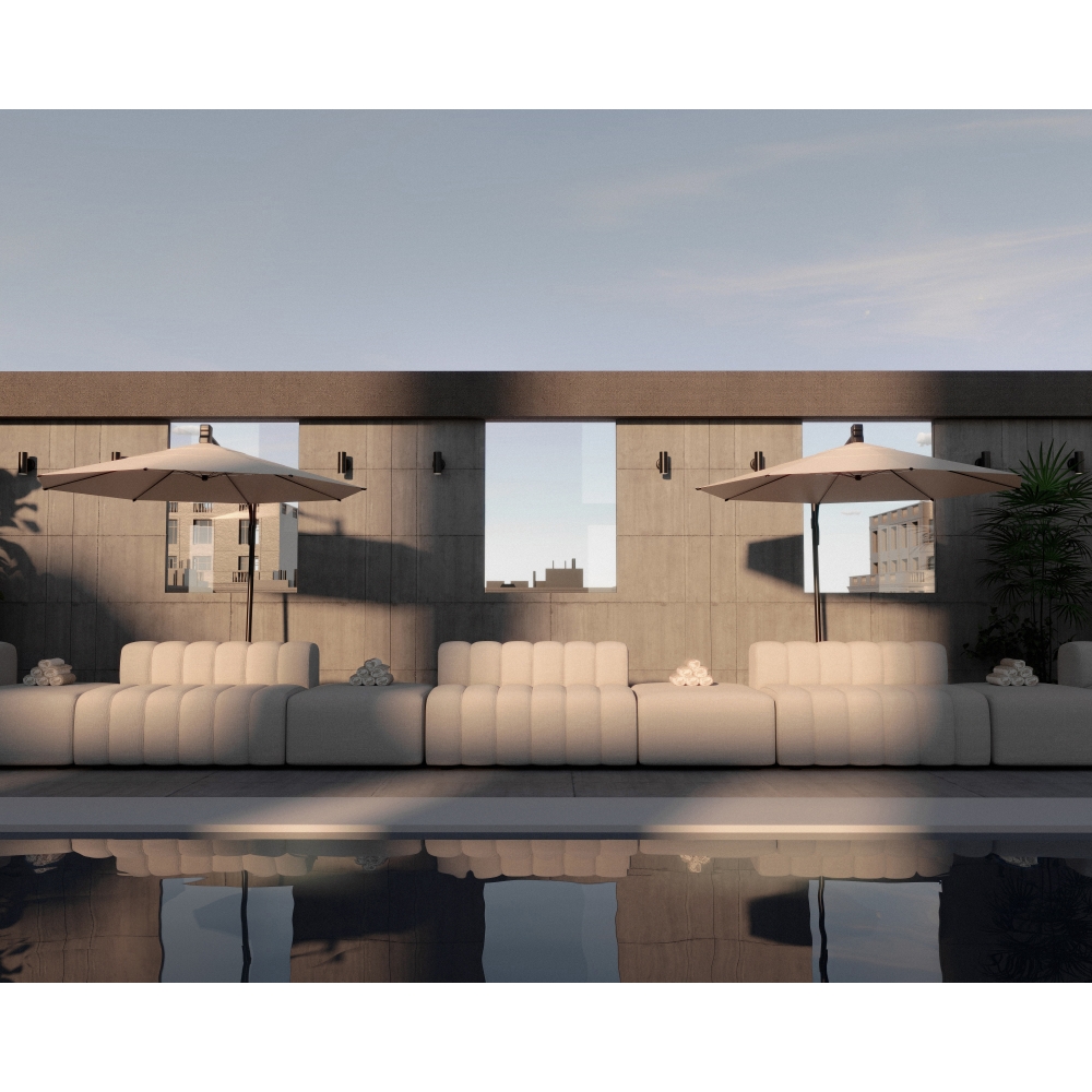 Das NORR11 Studio Sofa zieht nach draußen! Es bietet einen ruhigen und bequemen Platz, um sich zu entspannen und die Schönheit der Natur zu genießen. Ob Sie nun im Sonnenschein faulenzen oder den nächtlichen Sternenhimmel bewundern, diese Kollektion schafft eine ruhige Atmosphäre, die perfekt für eine magische Pause in der Zeit ist. Die Outdoor Lounge Collection ist aus Sunbrella gefertigt, einem hochwertigen Outdoor-Stoff, der für seine Langlebigkeit und Widerstandsfähigkeit bekannt ist. Dank ihrer Fähigkeit, den Elementen lange standzuhalten, ist diese Kollektion ideal für eine Vielzahl von Lounge-Bereichen im Freien, die robuste und wetterfeste Möbel erfordern.