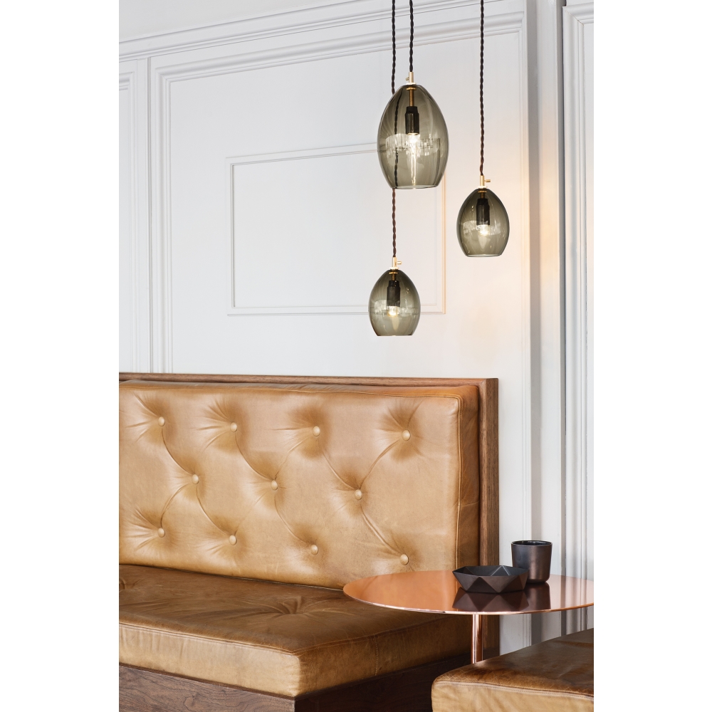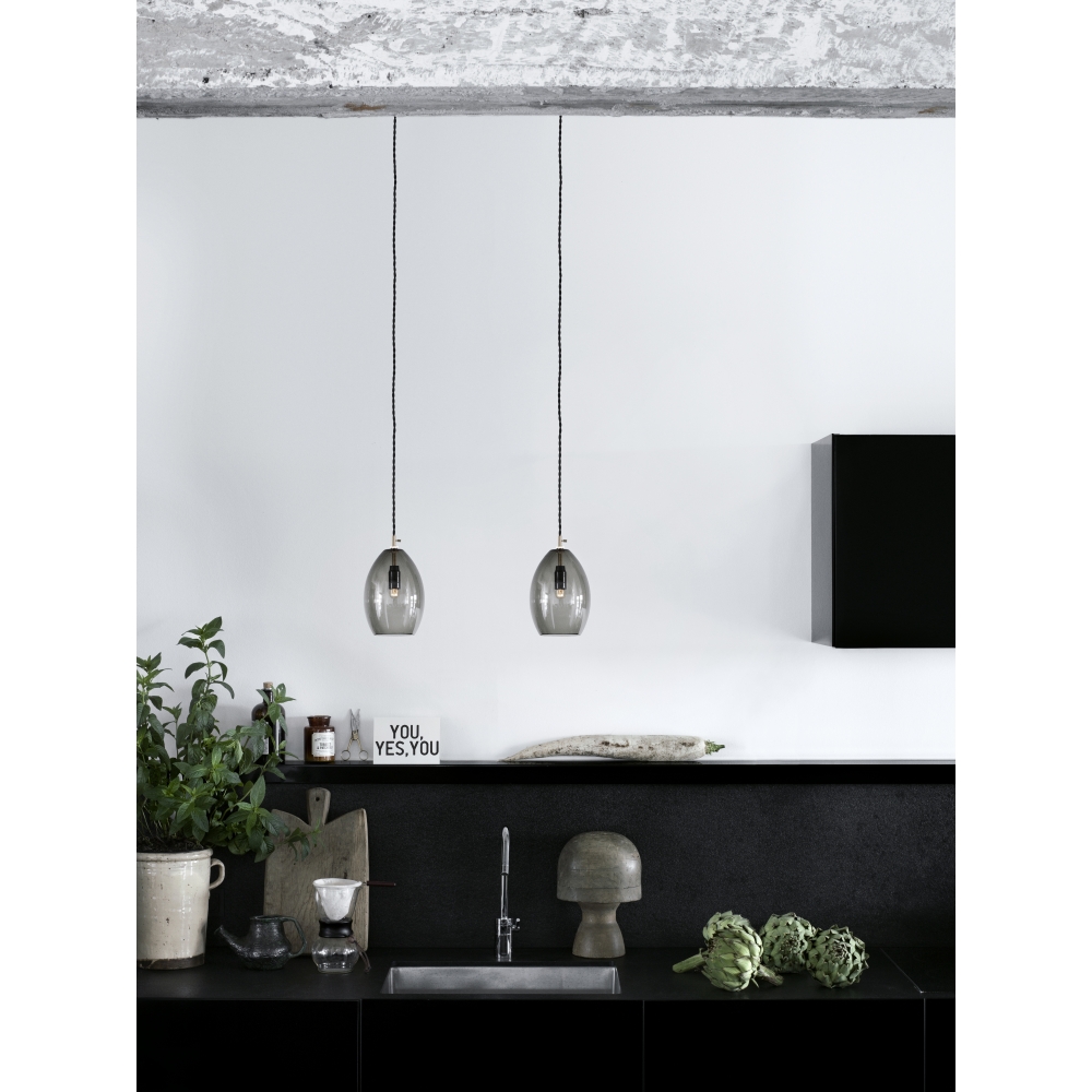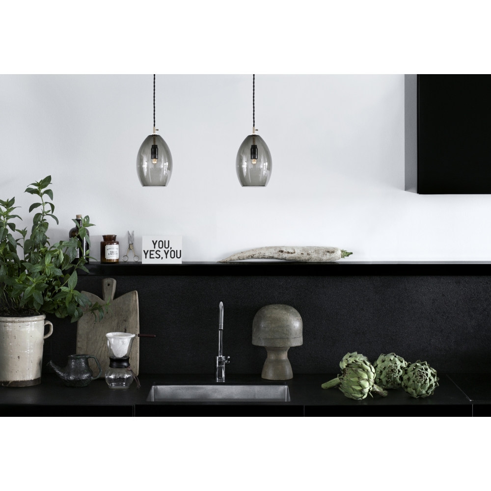 Unika ist eine mundgeblasene Serie kleiner Glaspendelleuchten, die ursprünglich für das Restaurant Grønbech und Churchill in Kopenhagen entworfen wurden. Die einfache Basis besteht aus massivem Messing. Ein Detail, das der Lampe ein klares, industrielles Aussehen verleiht und einen scharfen Kontrast zum fragilen, handgefertigten Lampenschirm aus Glas bildet. Der Schirm ist in zwei Größen erhältlich: 135 mm und 200 mm (Höhe) und hängt an einem verdrillten Stoffdraht. Unterschiedliche Glasdicken und -mängel verleihen diesem Objekt eine subtile Ehrlichkeit und verleihen der Lampe einen deutlichen, warmen Schimmer. Die Leuchte ist beleuchtet oder unbeleuchtet und verleiht jedem Raum Eleganz und Leichtigkeit. Die Unika-Serie eignet sich sowohl für gewerbliche als auch für private Innenräume.