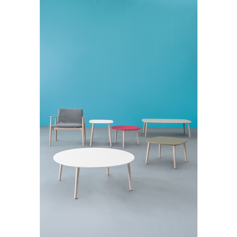 Die Familie Malmö breitet sich nun auch in Wartezimmern, Lounge- und Barbereichen aus. Die Tischplatten der Coffee Tables sind in furnierter Esche, Massivlaminat (weiß oder schwarz) oder lackiertem MDF (Rot und Graubeige) erhältlich, die Beine aus massiver Esche gedreht. Erhältlich in sieben verschiedenen Größen. Ausführungen des Gestells: Esche gebleicht oder schwarz gefärbt.