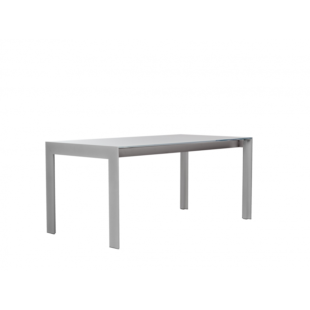 Ausziehbarer Tisch. Beine aus extrudiertem Aluminium mit einer Laminat- oder Glasplatte.