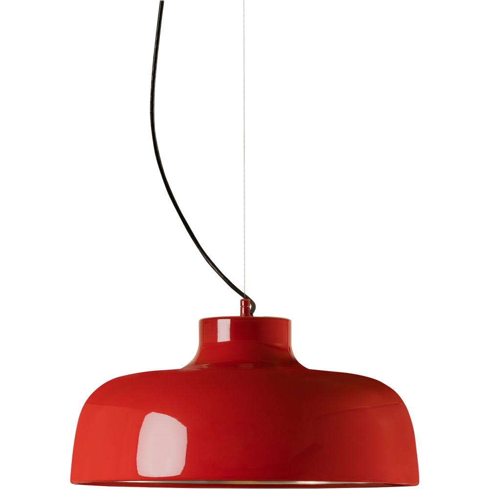 Der äußerst eindrucksvolle Schirm der Leuchte M68 verewigt die Silhouette einer Frauenschulter. Es handelt sich um eine Aluminium-Neuauflage der berühmten Methacrylat-Pop-Lampe aus den 1960er Jahren - ebenfalls von Miguel Milá - und sie ist jetzt in lebhaftem Rot, mattem Weiß oder Schwarz sowie in poliertem Aluminium erhältlich. Da der Schirm lichtundurchlässig ist, bietet er mit seinem glockenförmigen Querschnitt eine große Innenfläche, um das Licht zu streuen. Das Stromkabel verläuft von der oberen Mitte des Schirms zusammen mit einem kleinen Metallzylinder, der den Schirm mit dem Stahldraht verbindet, der ihn in der Luft hält. Kurz gesagt, die M68 ist die freundlichste Art, einen großen Tisch zu beleuchten.