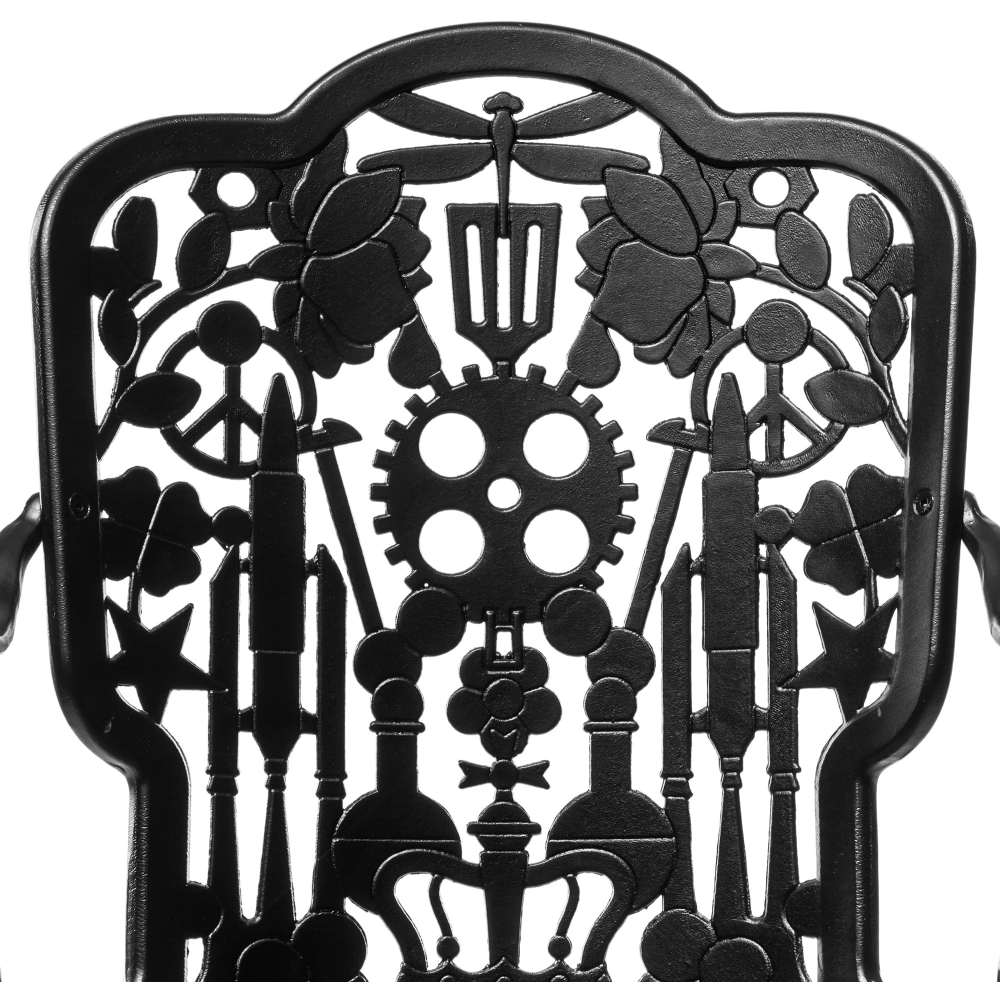 Romantische und zeitlose Formen eines klassischen viktorianischen Gartensets. Die Dekorationen zeigen die maximale Darstellung des von Studio Job entworfenen Popstils. Die klassischeren Gartenmöbel sind jetzt verrückte und farbenfrohe, echte bukolische Designkunstwerke.
