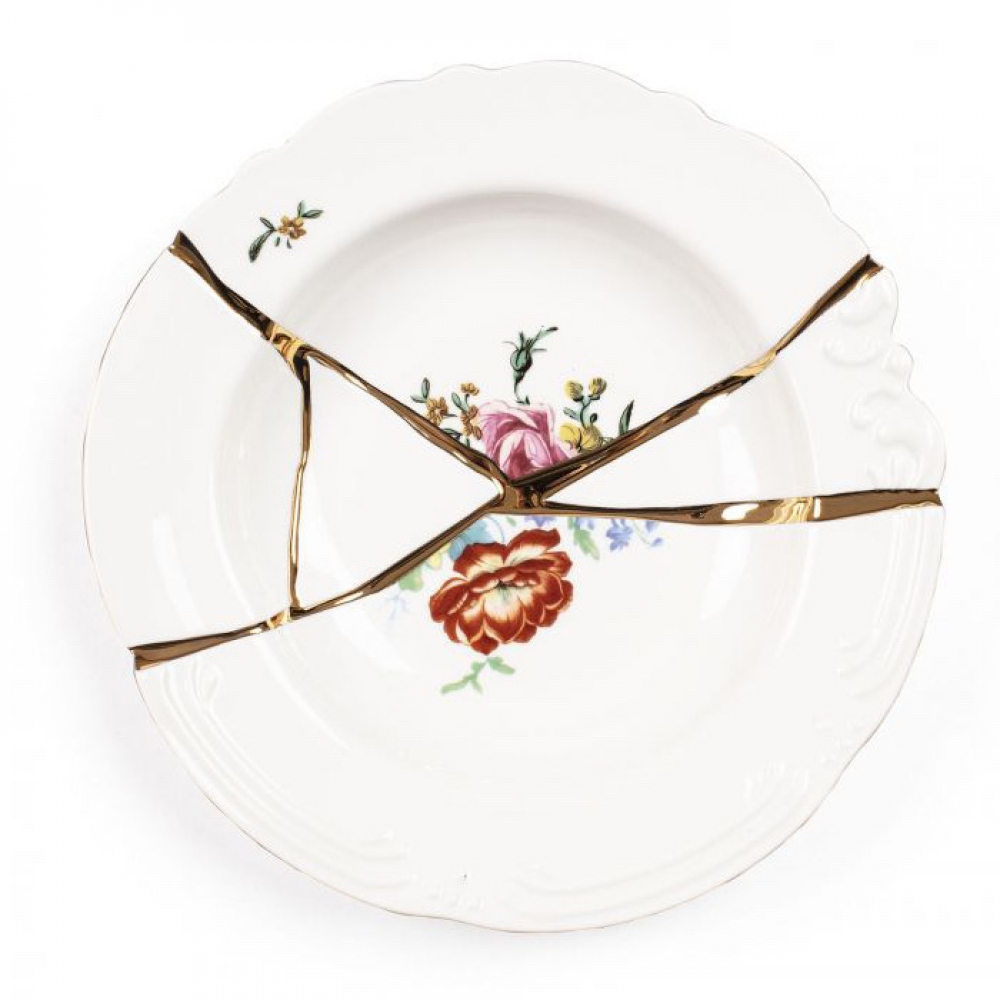 Die japanische Kunst von Kintsugi nimmt zeitgenössische Formen an. Das zarte Porzellan wird verherrlicht und mit Goldfragmenten für eine Geschirrkollektion aus charmanten und unerwarteten Kompositionen angereichert.