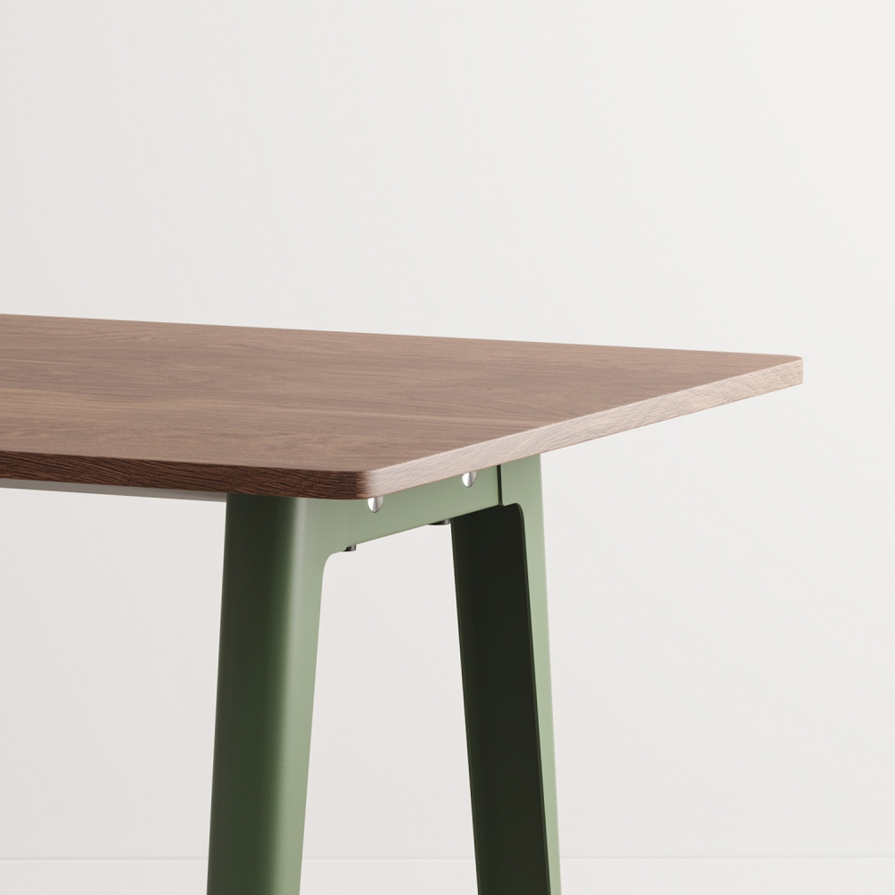 Tischplatte: öko-zertifiziertes Walnussholz, Gestell: pulverbeschichteter Stahl