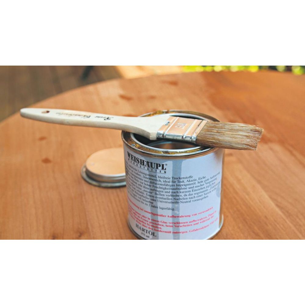 Lieferumfang Hartöl 0,375 l (ca. 10 - 12 qm), Latexhandschuhe, Pinsel, Wischvlies, Pflegeanleitung