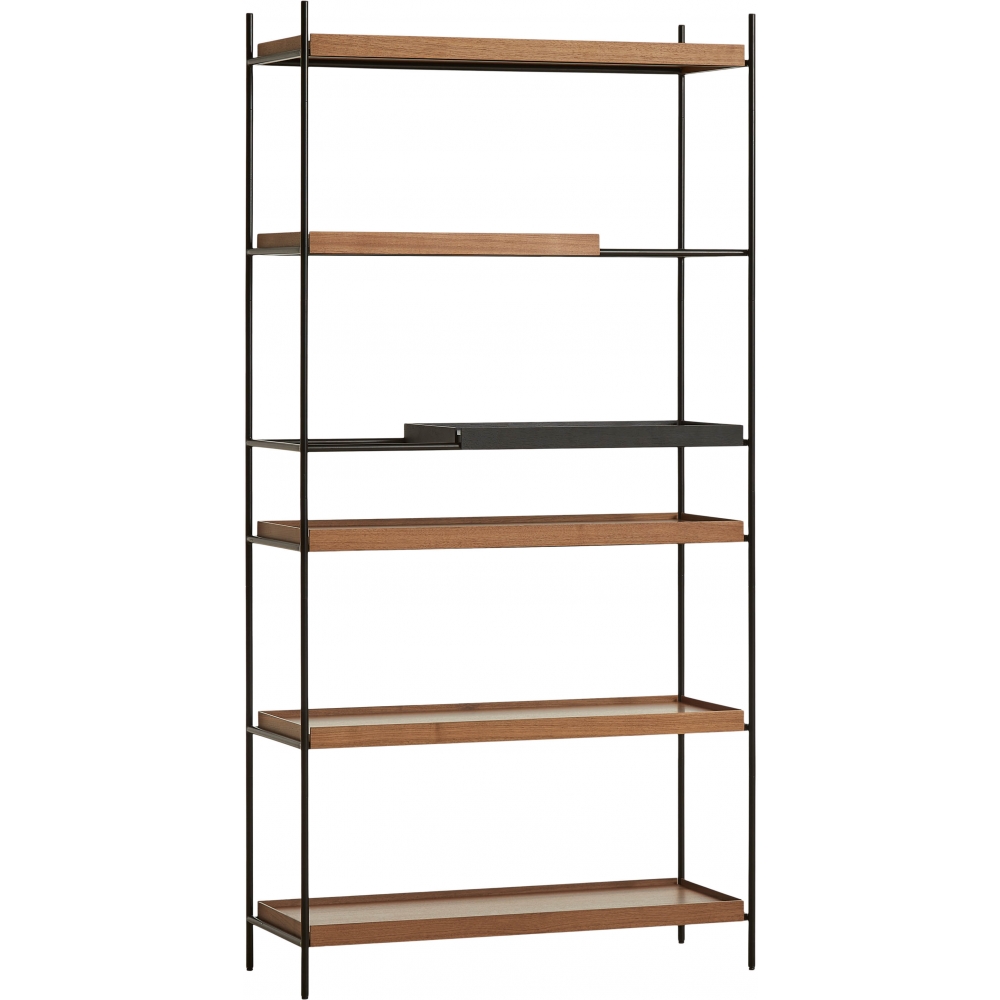 Das Tray Regal ist ein lebendiges Regalsystem mit geraden Linien, ästhetischer Symmetrie und einem simplen Ausdruck. Entwickelt, um verschiedene mögliche Anordnungen der Fächer zu schaffen, die das Regalsystem dynamisch und persönlich machen, indem Sie Ihre Lieblingsfachkombination wählen. Nehmen Sie die Fächer und legen Sie sie auf die verschiedenen Ebenen im Rahmen. Lücken im Regalsystem werden erzeugt, indem die kleinen Fächer bewegt werden können, wodurch größere Objekte im Freiraum platziert werden können.