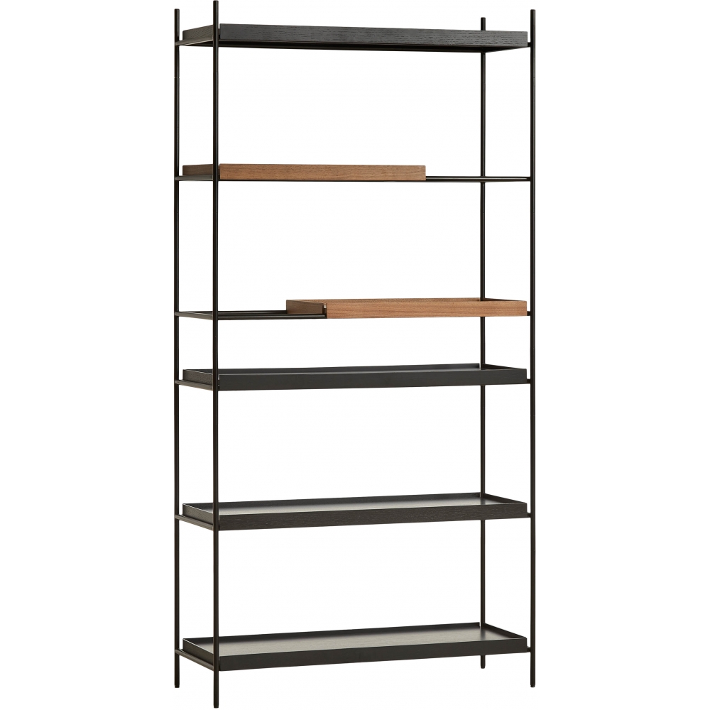 Das Tray Regal ist ein lebendiges Regalsystem mit geraden Linien, ästhetischer Symmetrie und einem simplen Ausdruck. Entwickelt, um verschiedene mögliche Anordnungen der Fächer zu schaffen, die das Regalsystem dynamisch und persönlich machen, indem Sie Ihre Lieblingsfachkombination wählen. Nehmen Sie die Fächer und legen Sie sie auf die verschiedenen Ebenen im Rahmen. Lücken im Regalsystem werden erzeugt, indem die kleinen Fächer bewegt werden können, wodurch größere Objekte im Freiraum platziert werden können.