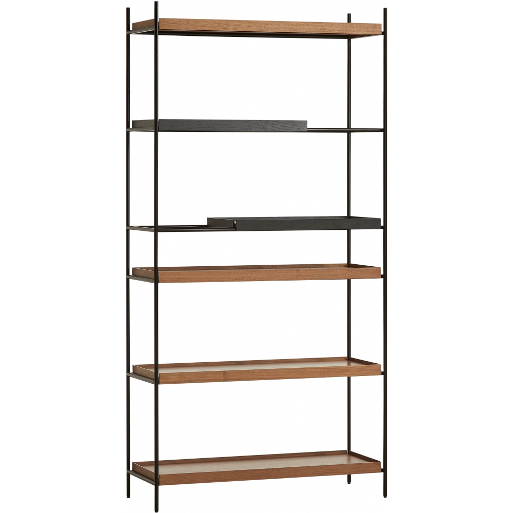 Das Tray Regal ist ein lebendiges Regalsystem mit geraden Linien, ästhetischer Symmetrie und einem simplen Ausdruck. Entwickelt, um verschiedene mögliche Anordnungen der Fächer zu schaffen, die das Regalsystem dynamisch und persönlich machen, indem Sie Ihre Lieblingsfachkombination wählen. Nehmen Sie die Fächer und legen Sie sie auf die verschiedenen Ebenen im Rahmen. Lücken im Regalsystem werden erzeugt, indem die kleinen Fächer bewegt werden können, wodurch größere Objekte im Freiraum platziert werden können.